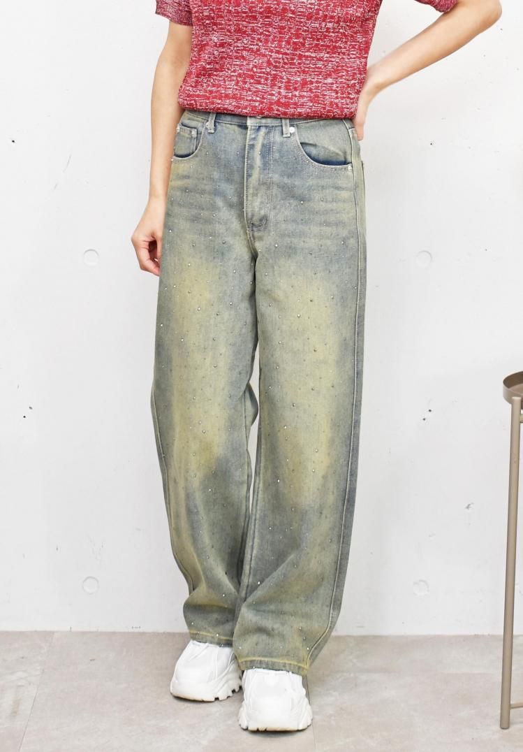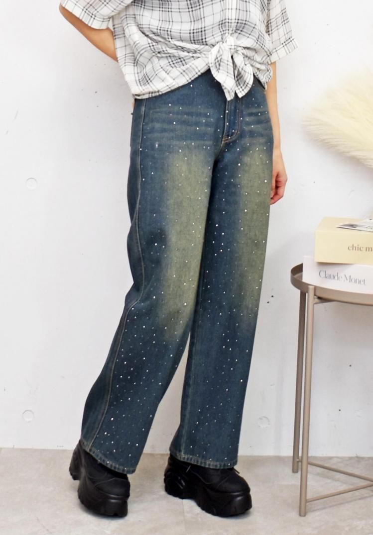 ラインストーンデニムパンツ