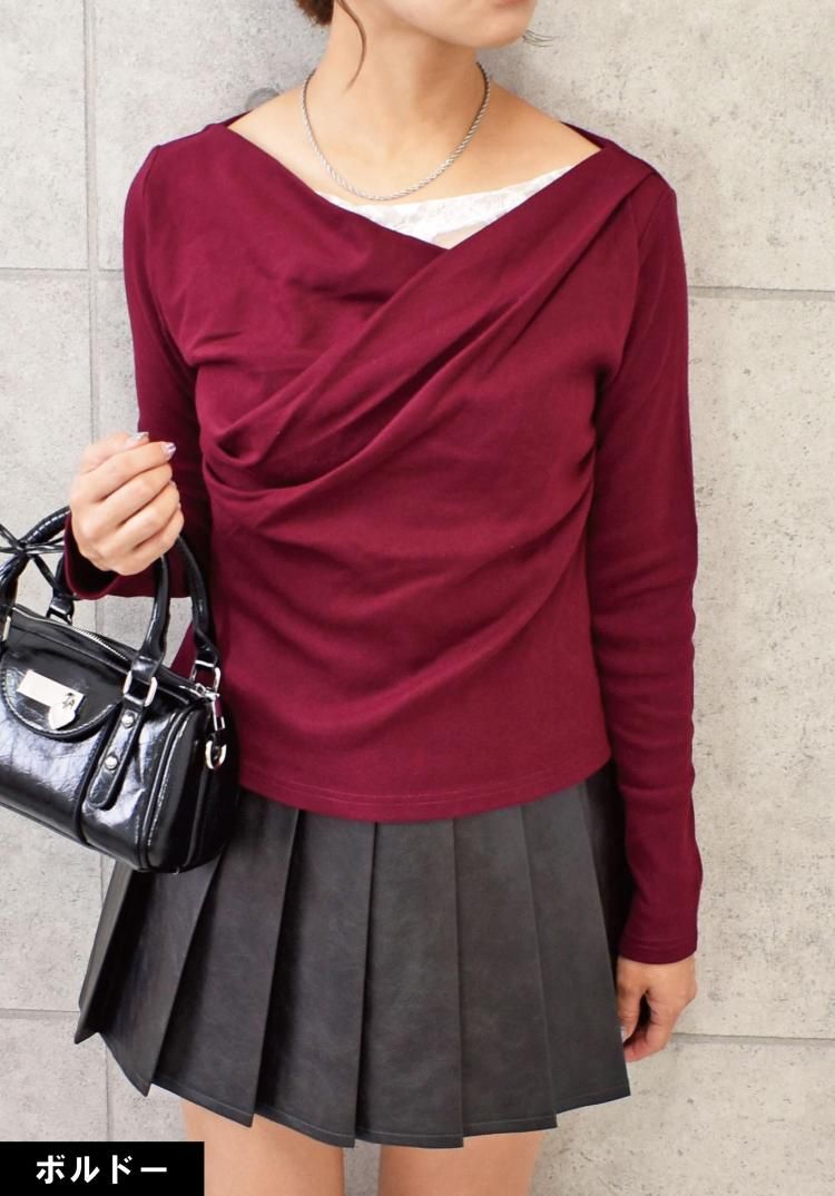 鎖骨まわりをきれいに見せながらニュアンスのあるドレープが女性らしさをプラス。