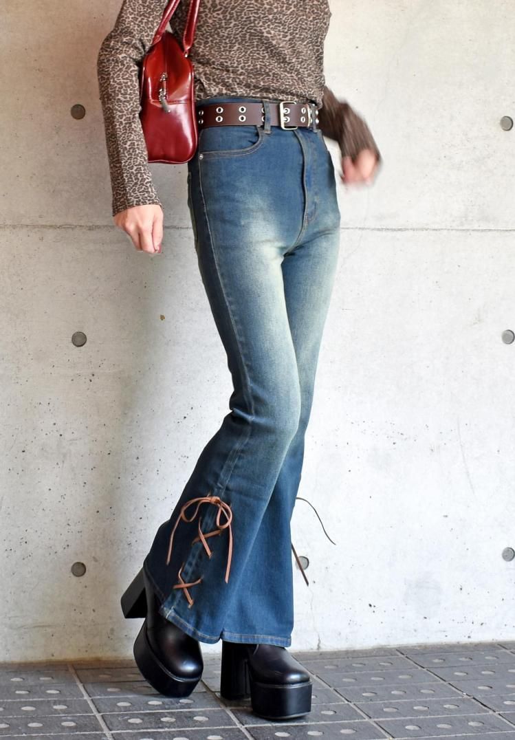 レースアップフレアーパンツ