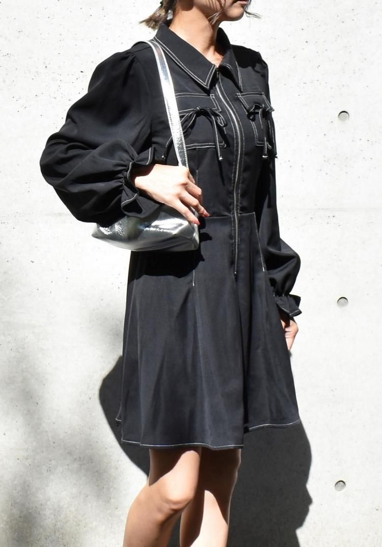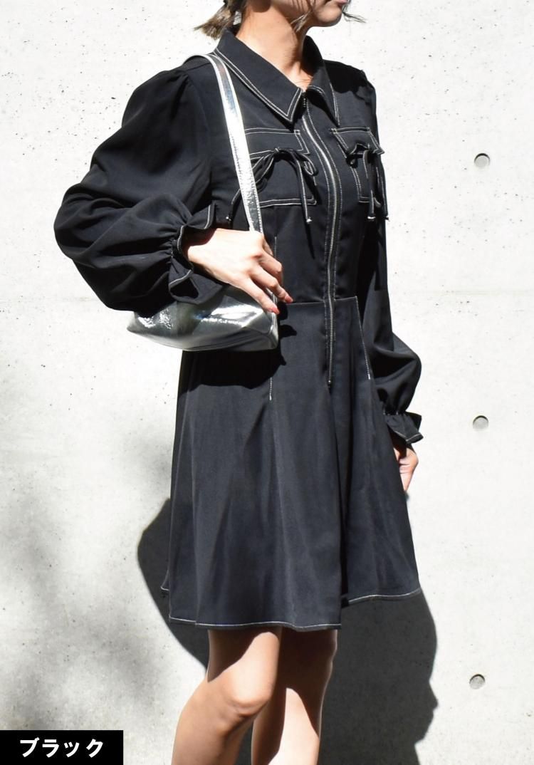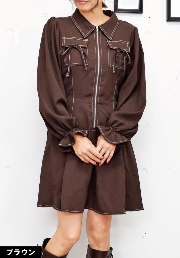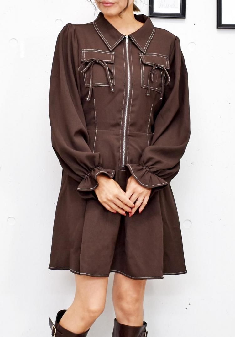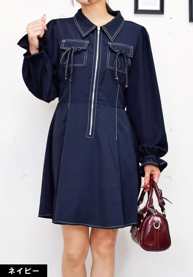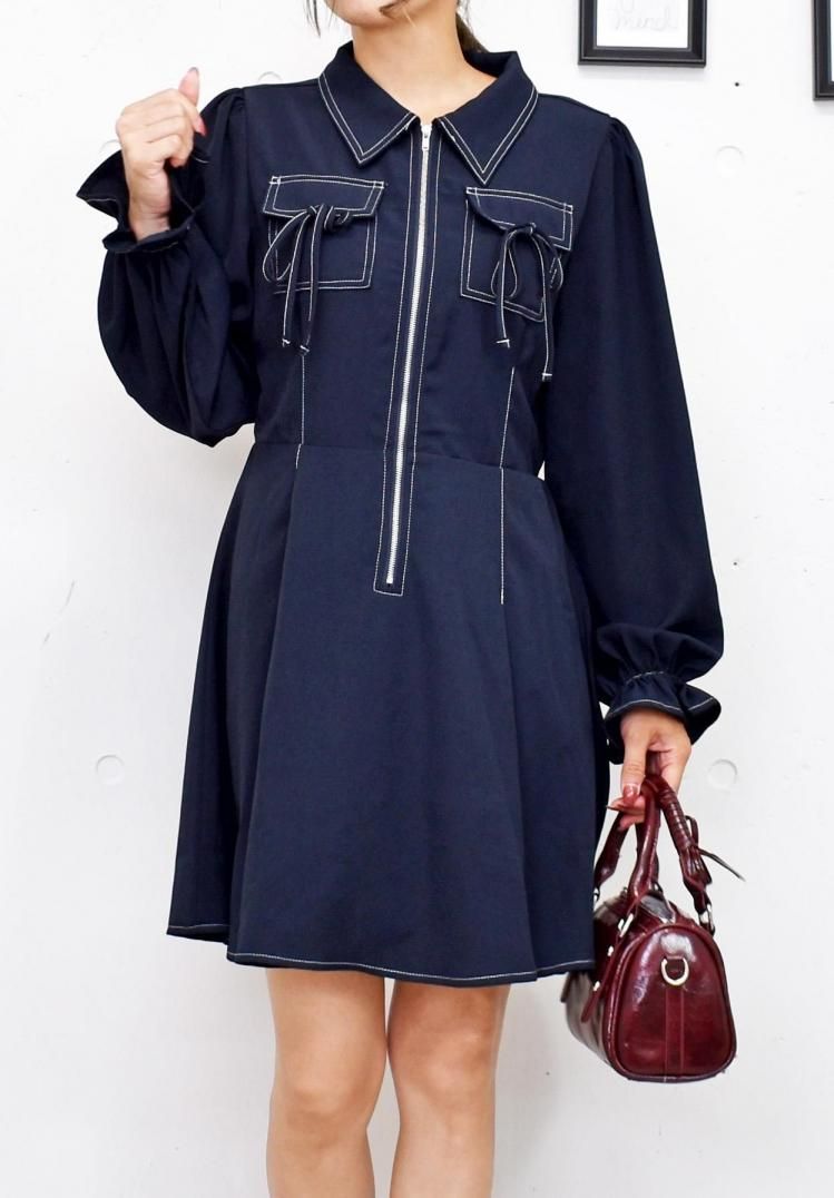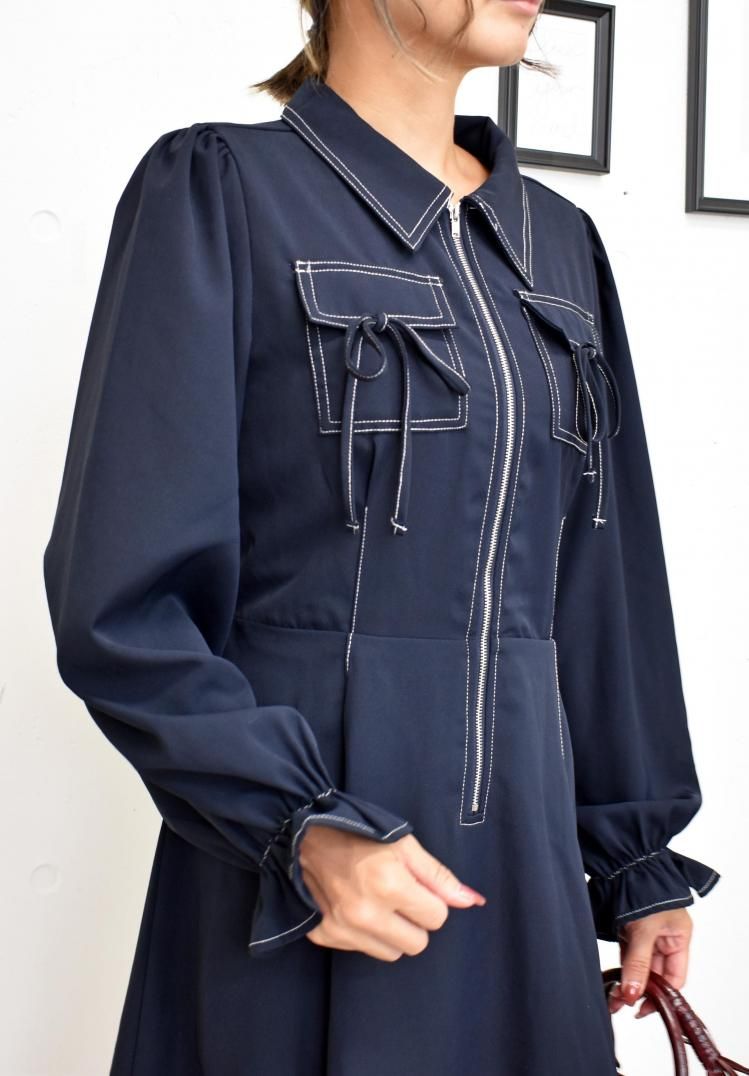 胸元のリボン付きポケットや、ステッチが特徴的で、着映えするデザイン!