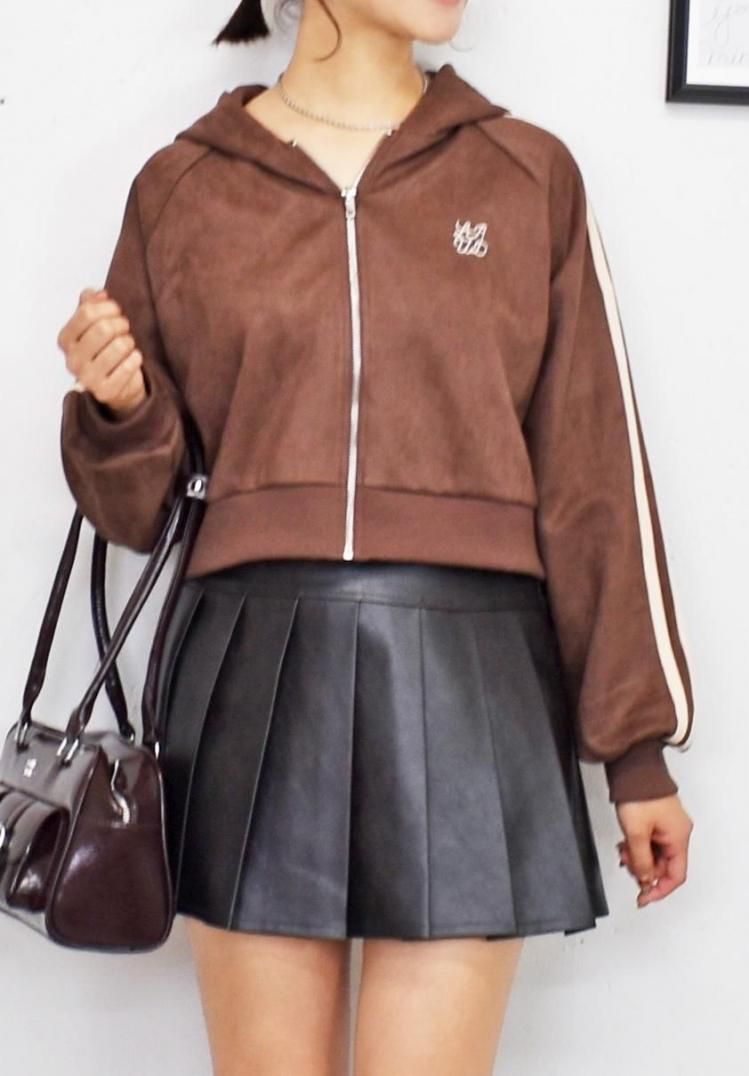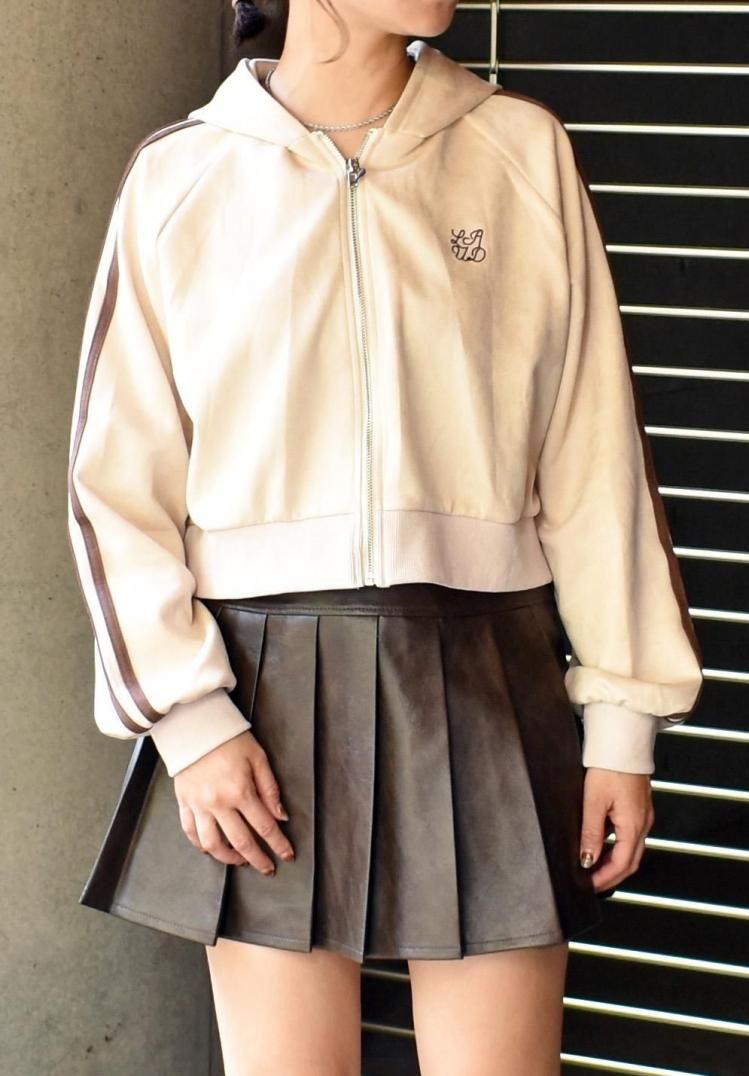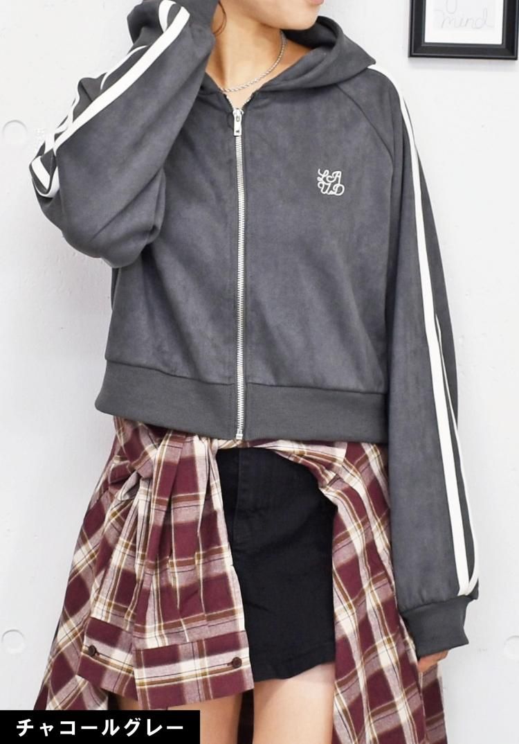 スポーティーな印象のパーカーに、胸元のロゴ刺繍が可愛らしさをプラスしています。