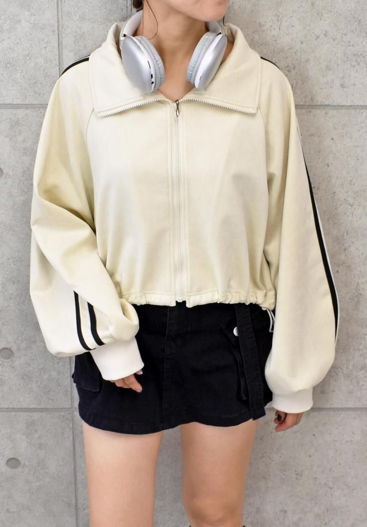 トラックジャケット特有のスポーティなデザインながら、短めの丈と裾のドローコードが女性らしさをプラス。トレンド感のある着こなしが叶います。