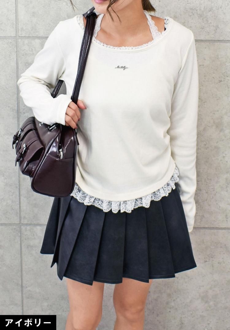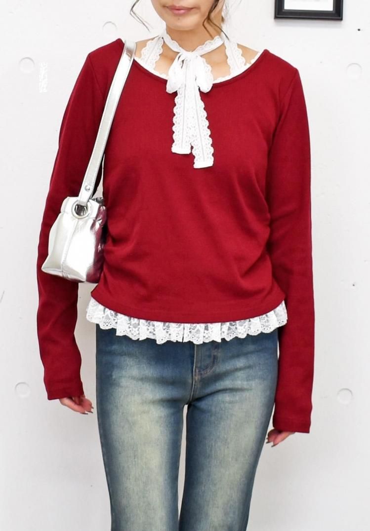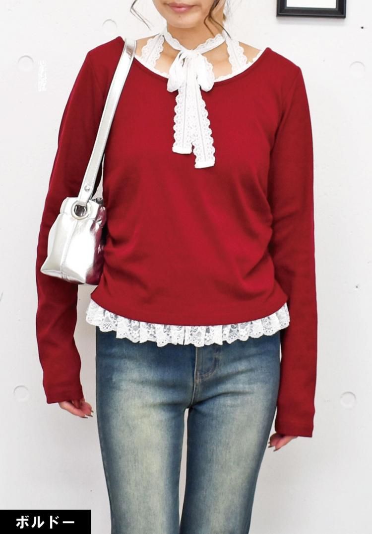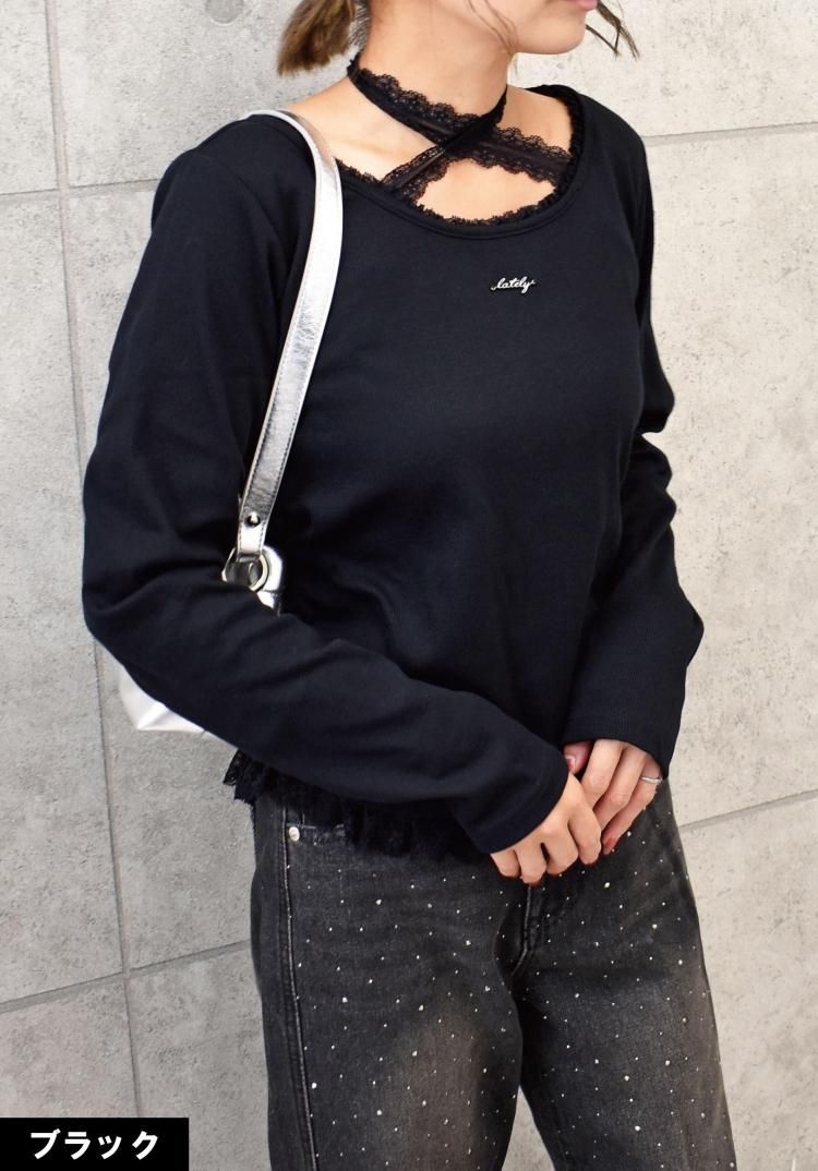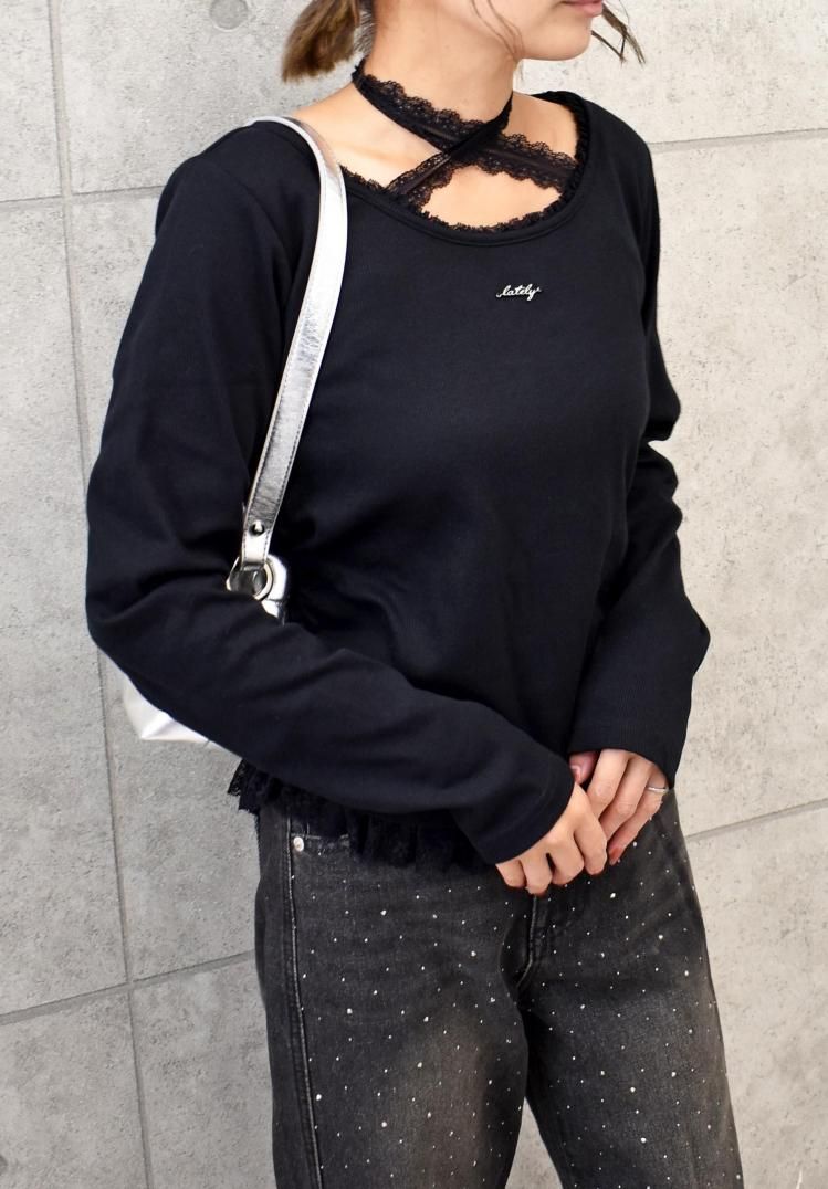 首元のレース紐は、おなじみのマルチウェイで様々なアレンジが可能。