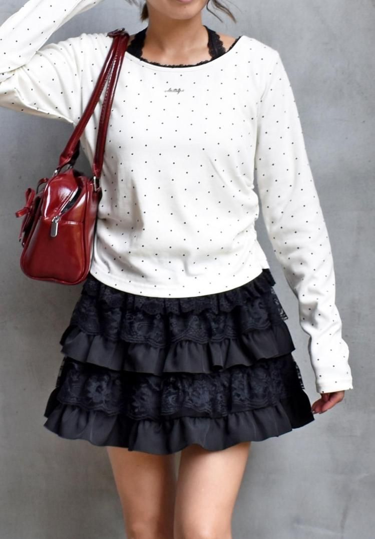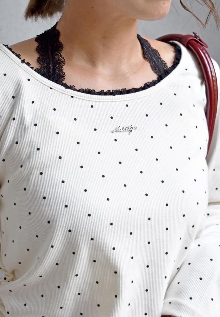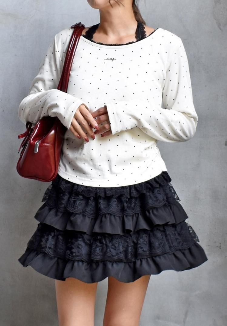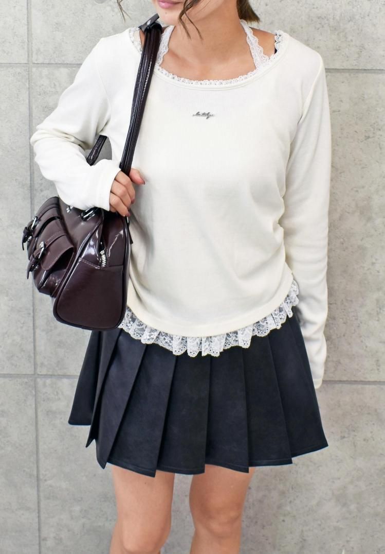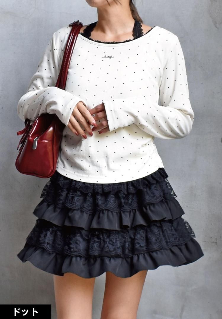 首元のレース紐は、おなじみのマルチウェイで様々なアレンジが可能。