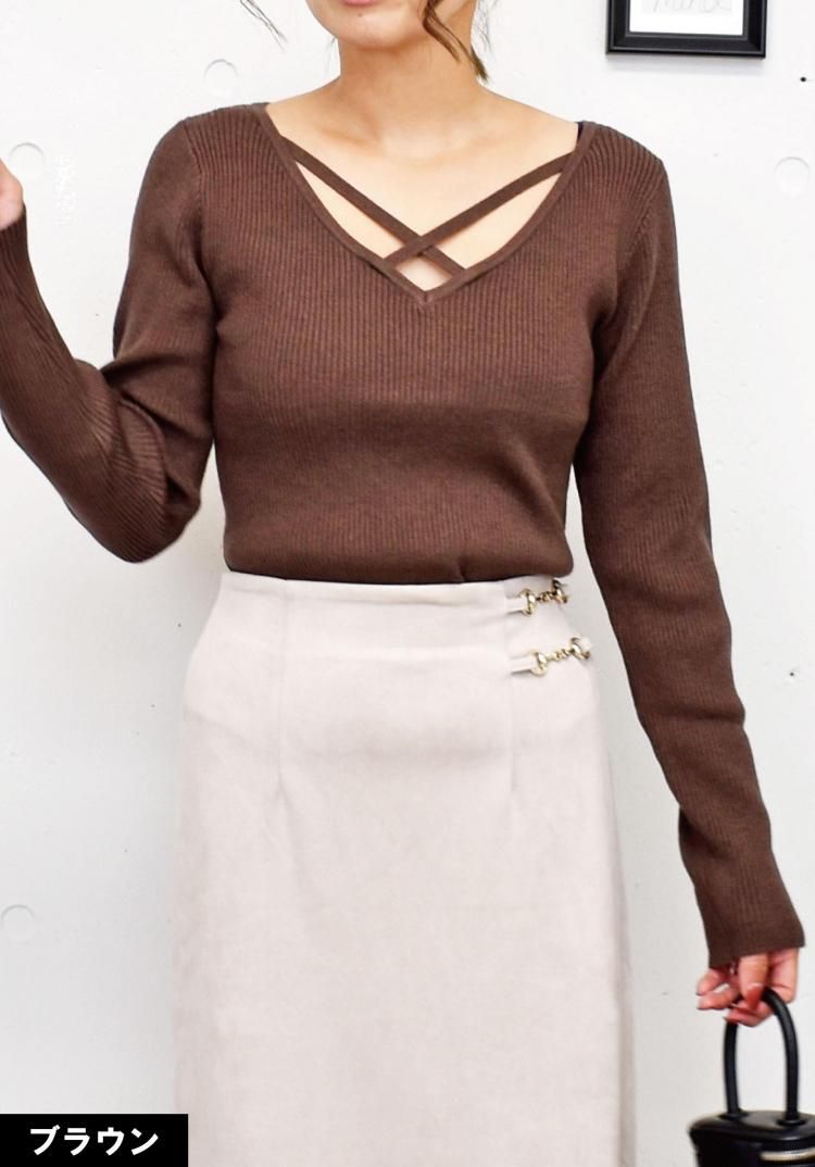 デコルテを綺麗に見せてくれるクロスネックのデザインが、女性らしさを演出。