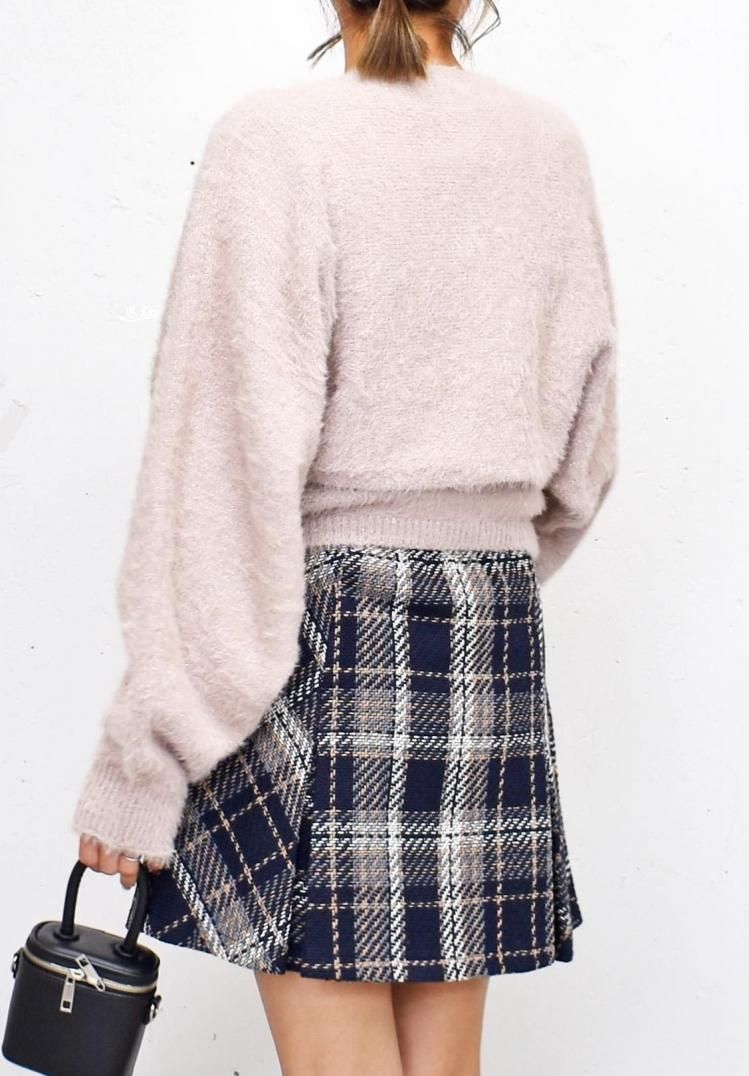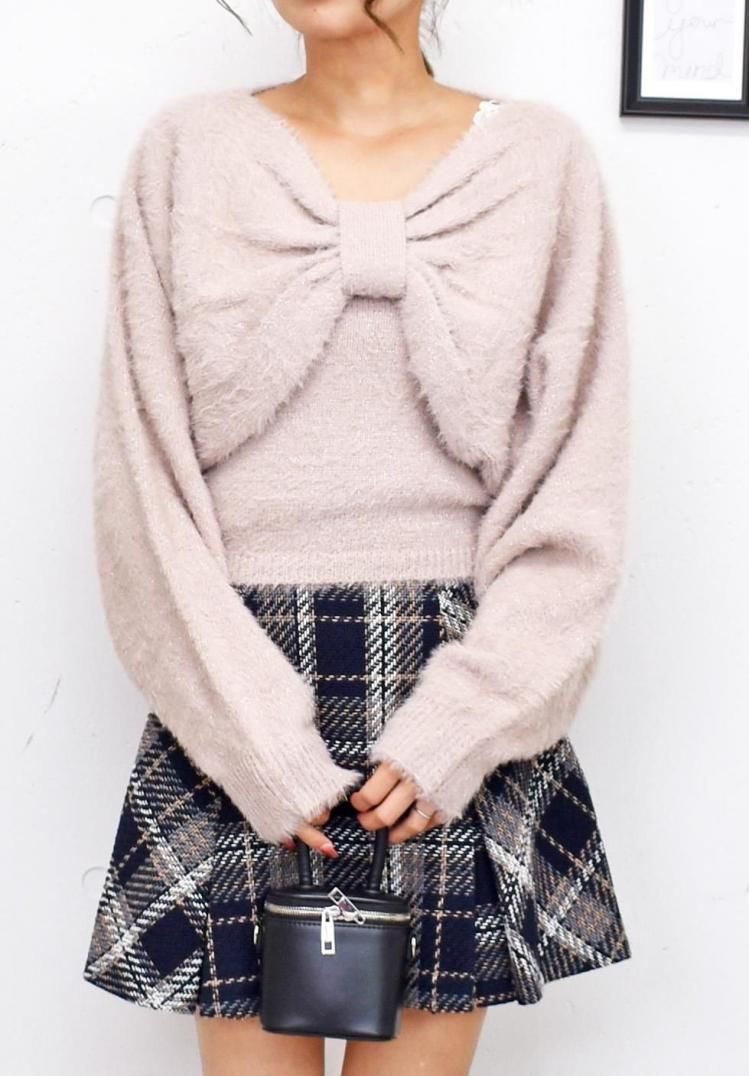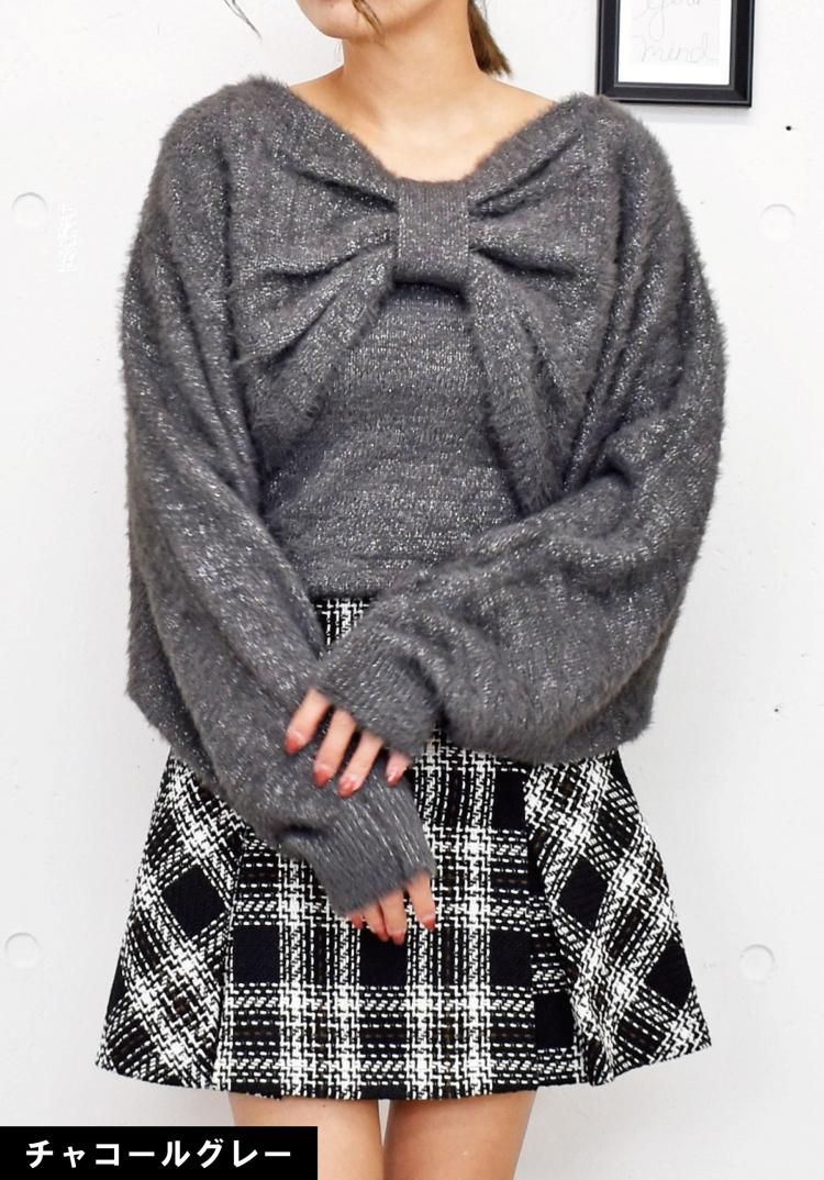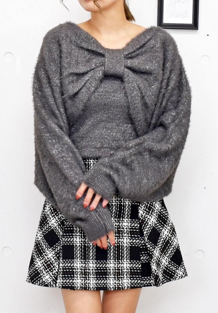 ラメシャギーニットを使用しており、上品な華やかさを演出。