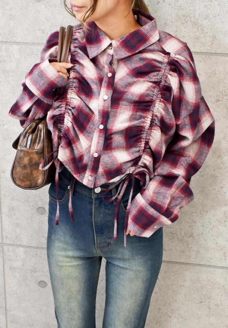 シャーリングでウエストまわりをギュッと絞り、シルエットを変えられます◎