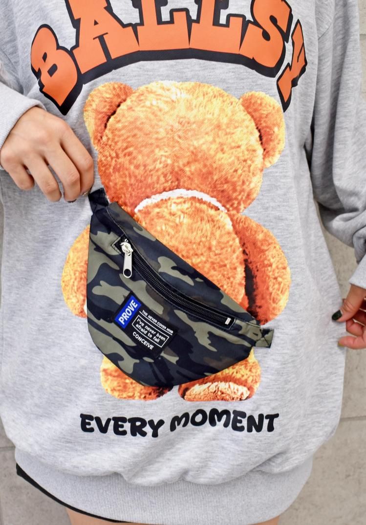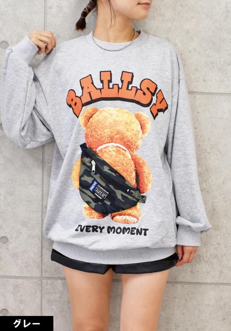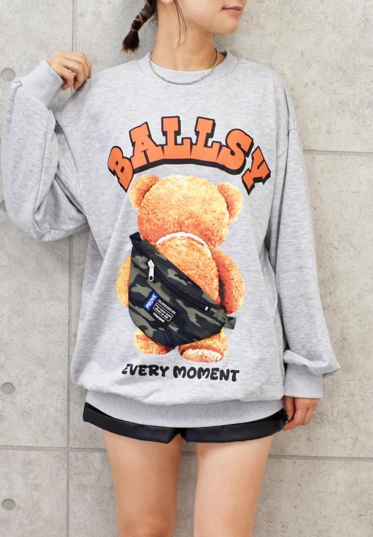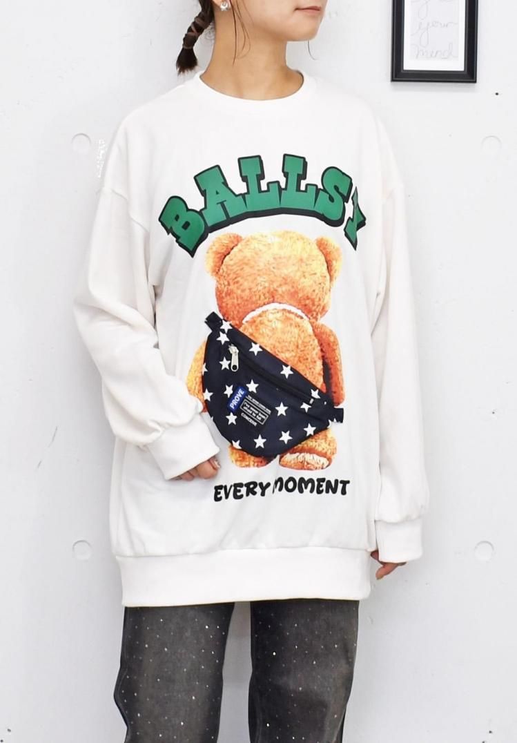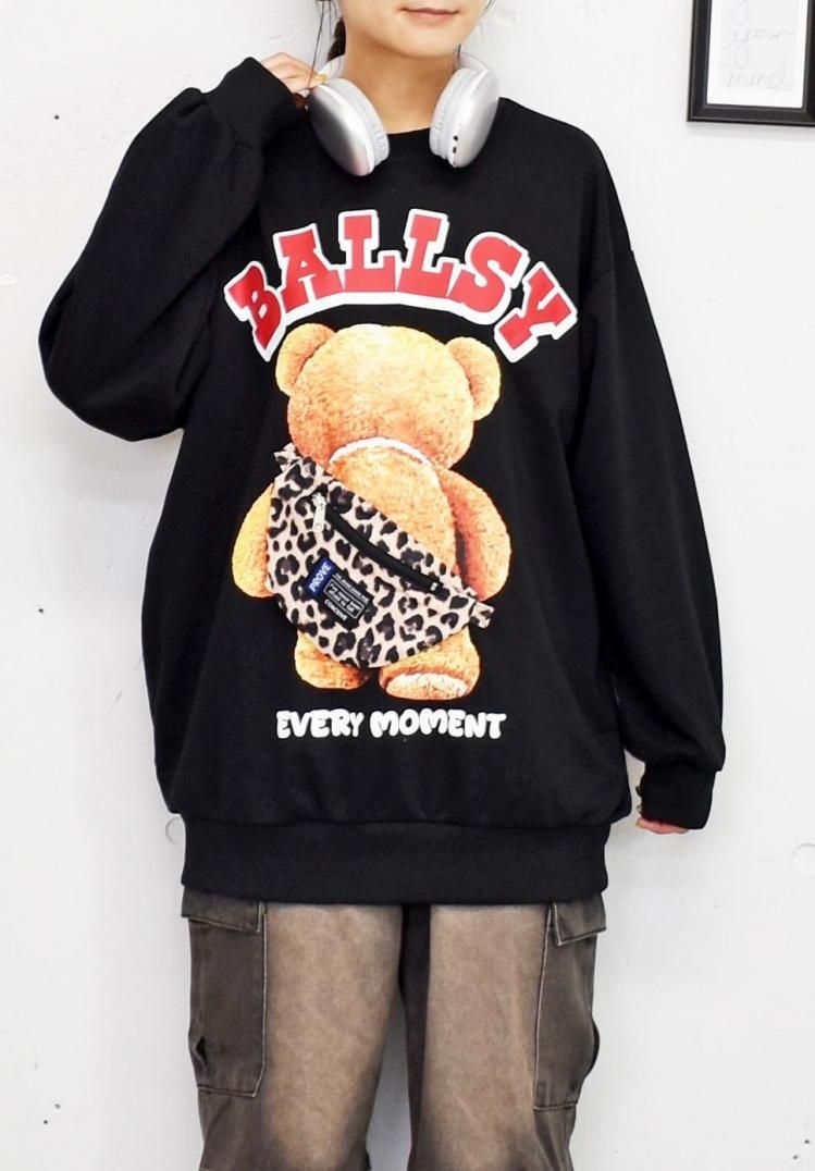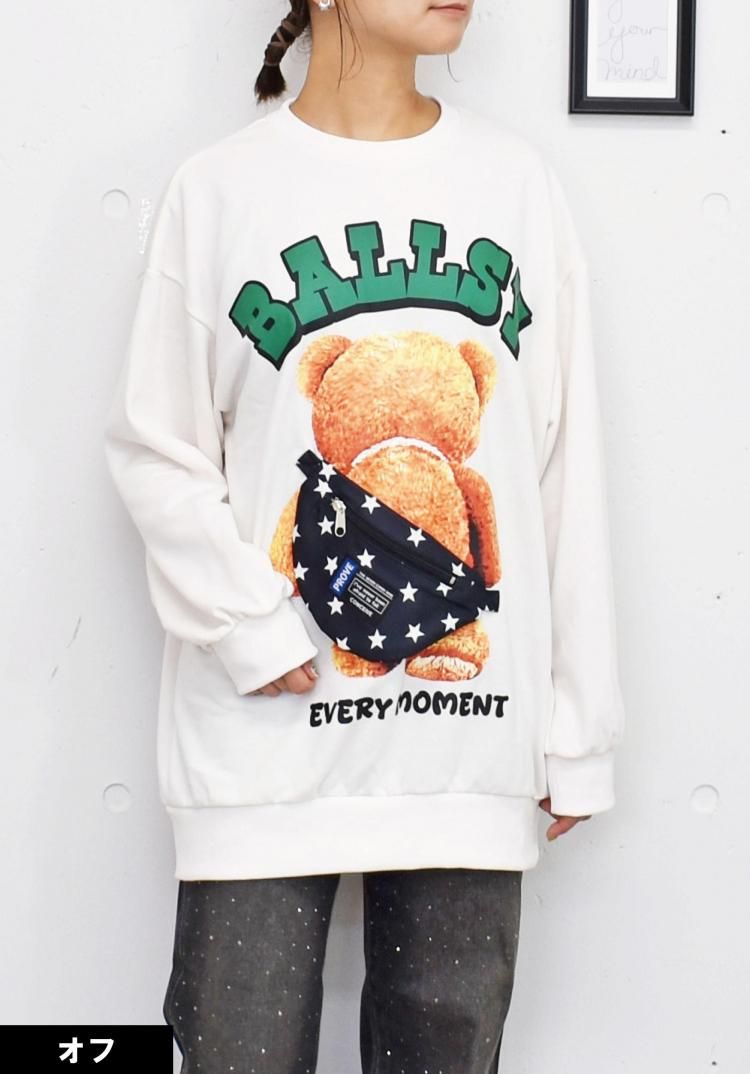 フロントの大きなテディベアプリントがキュートなアクセント。