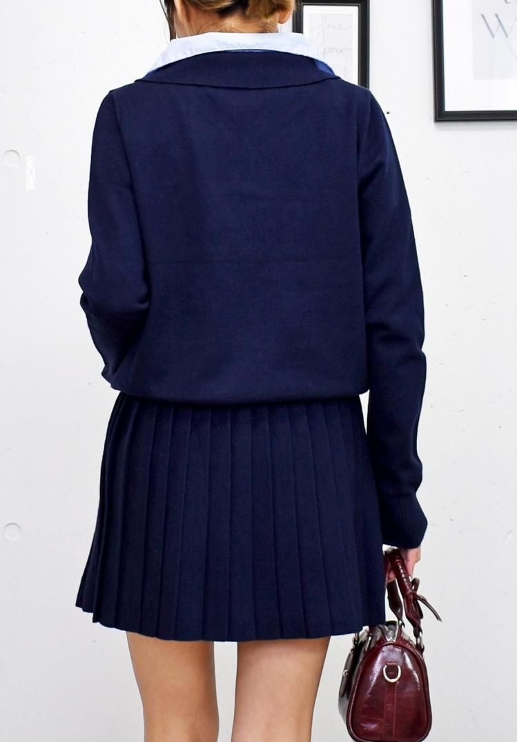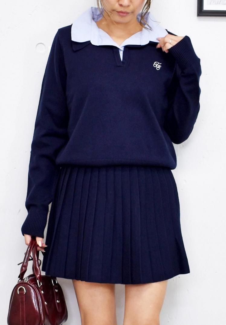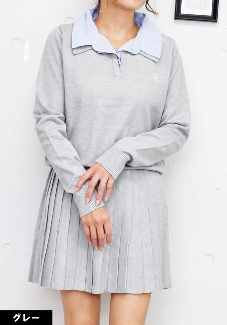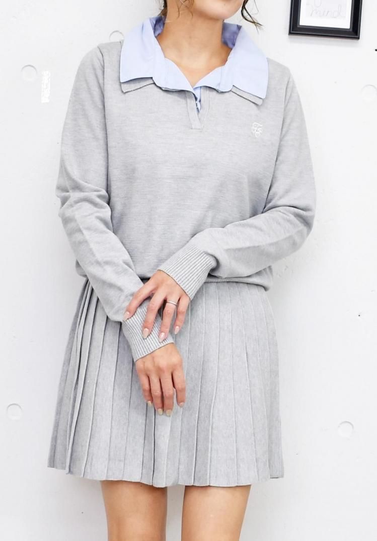 重ね襟のレイヤードデザインで顔まわりを明るく見せつつ、さりげなくプレッピーな雰囲気を演出。