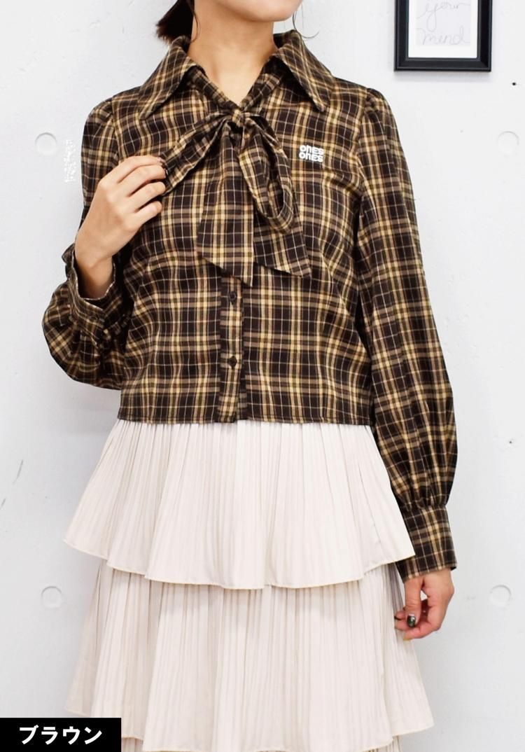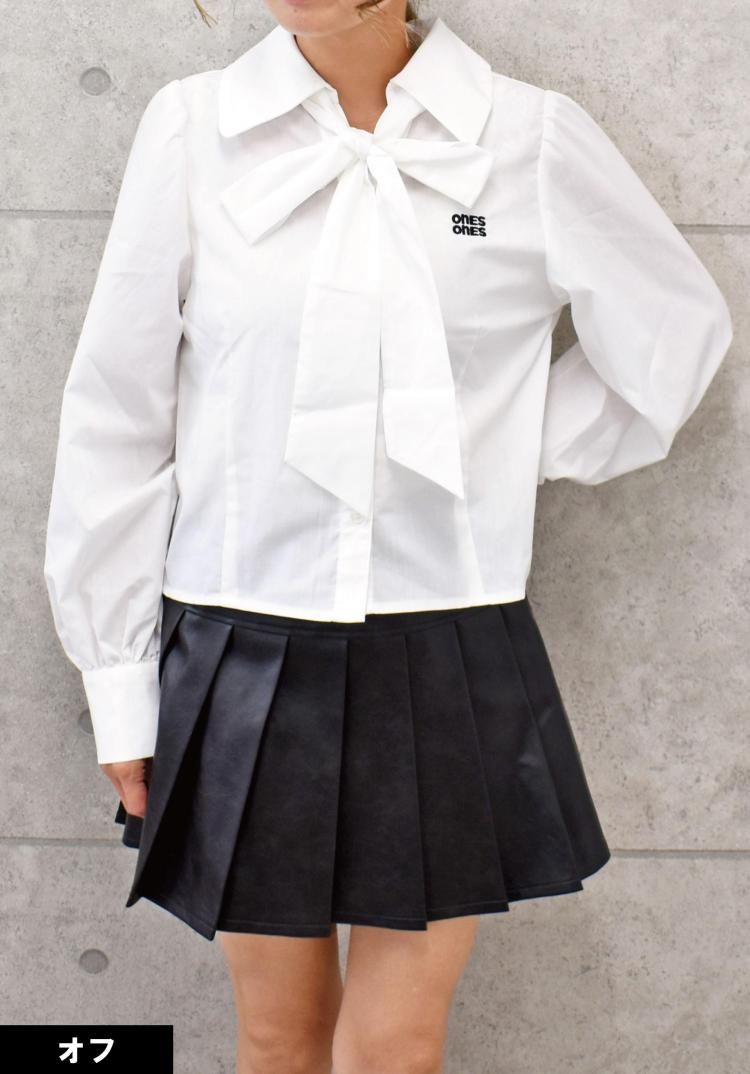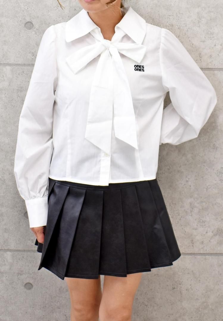 首元でリボン結びできるタイ付きで、華やかさと女性らしさを瞬時に演出。