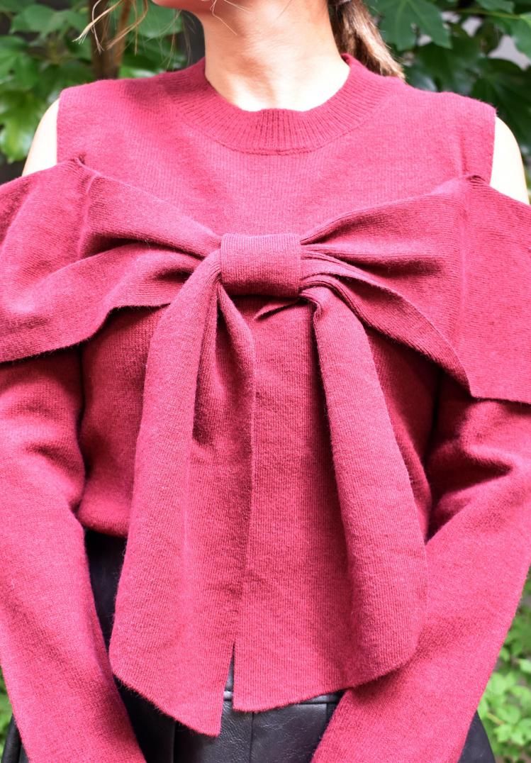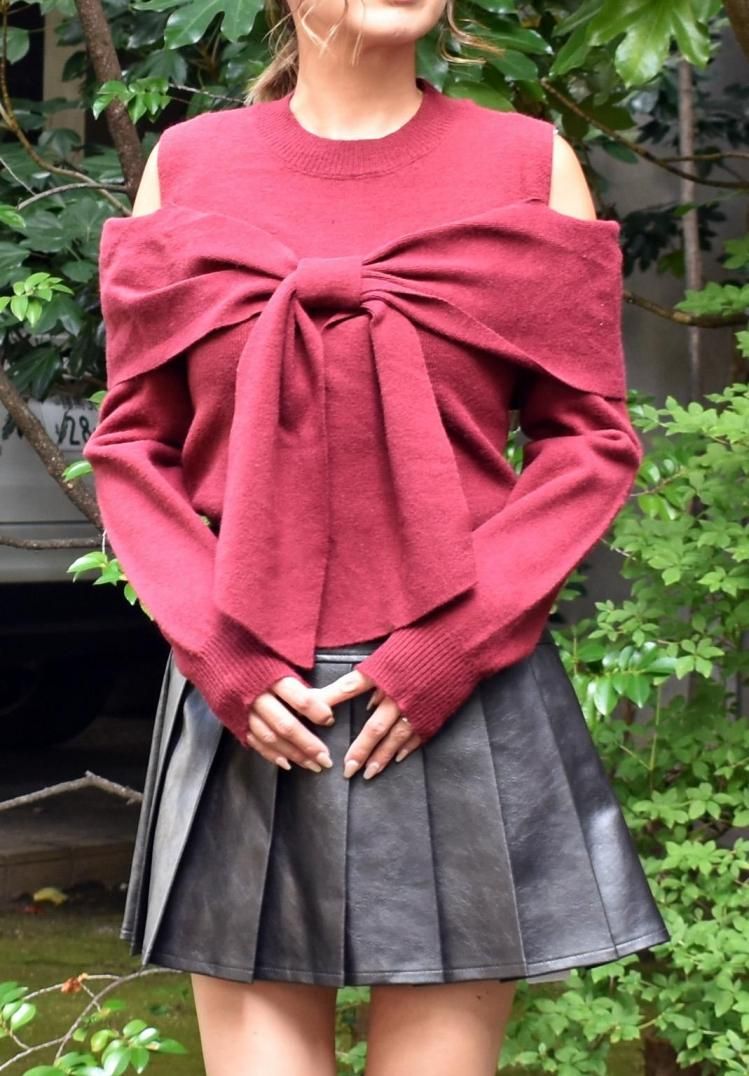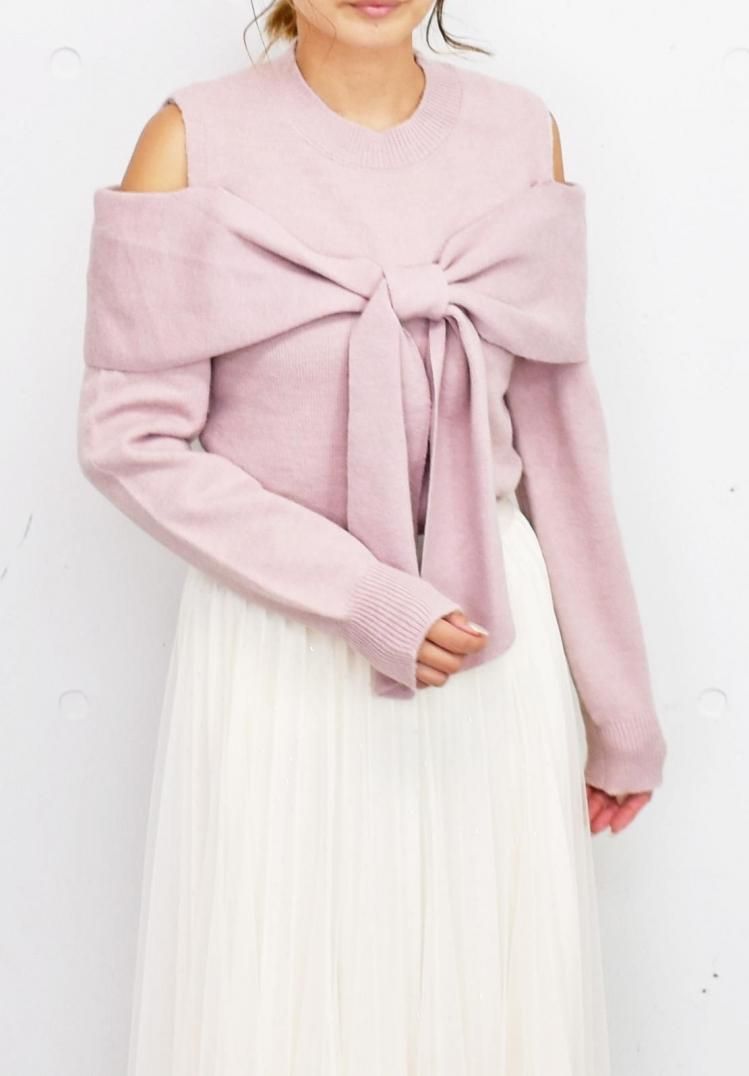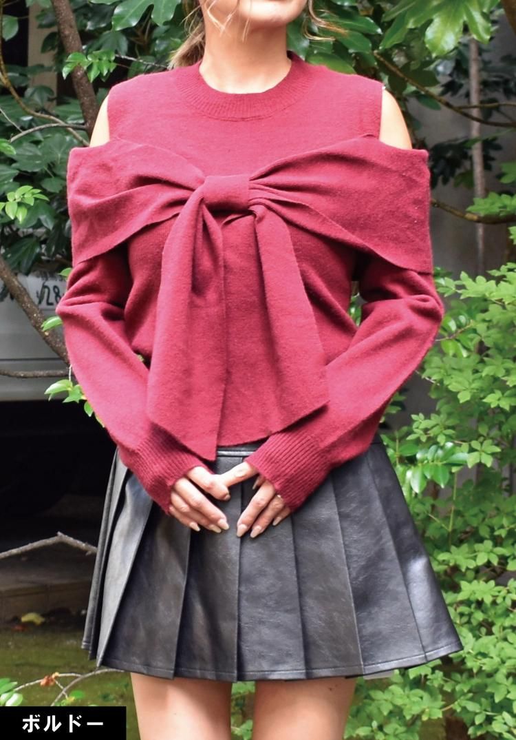 フロントにあしらわれた立体的なリボンが、コーディネートの主役になる華やかさを演出。