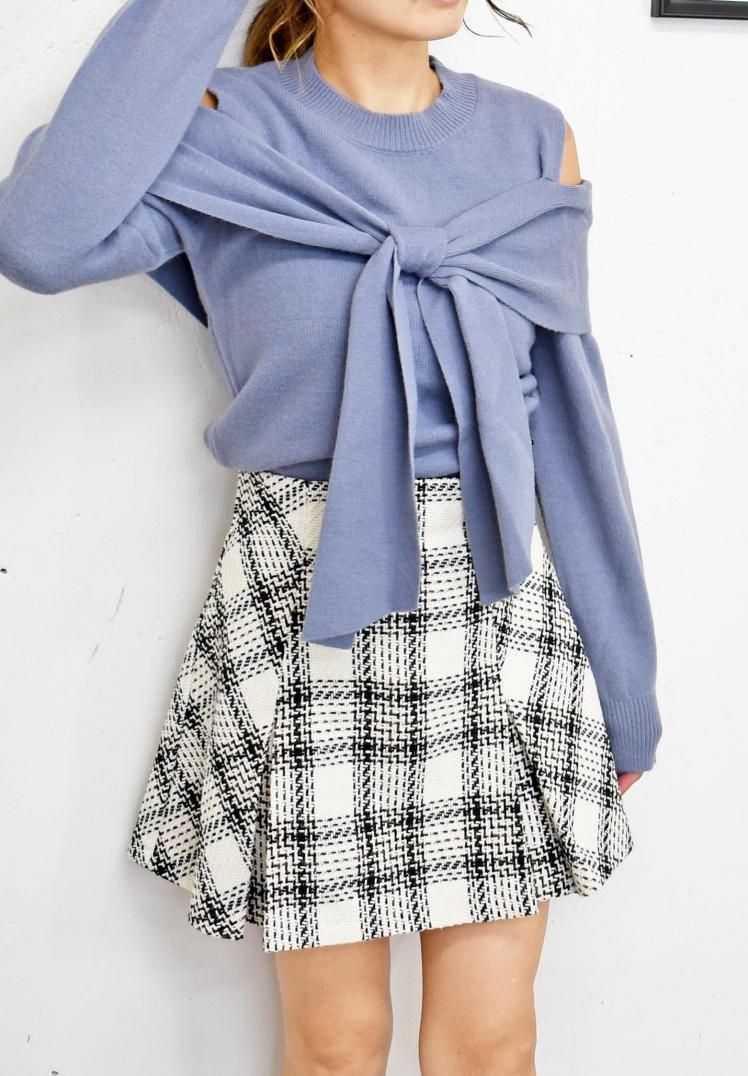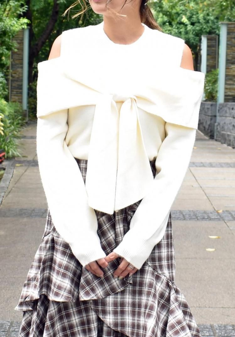肩あき仕様が、肌見せで程よい抜け感をプラス。
