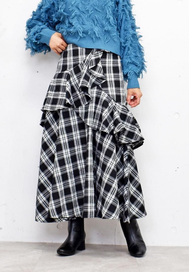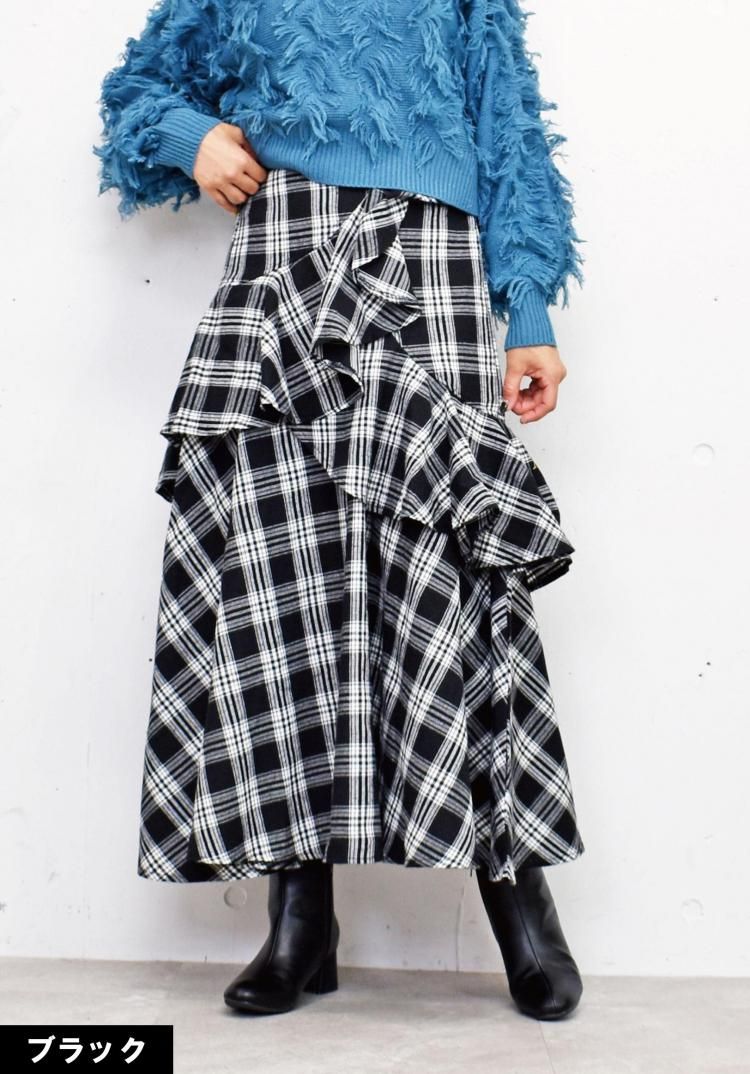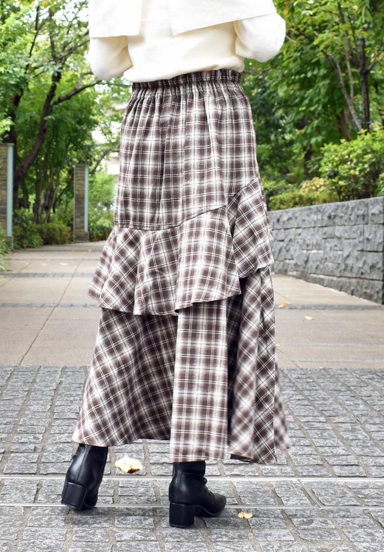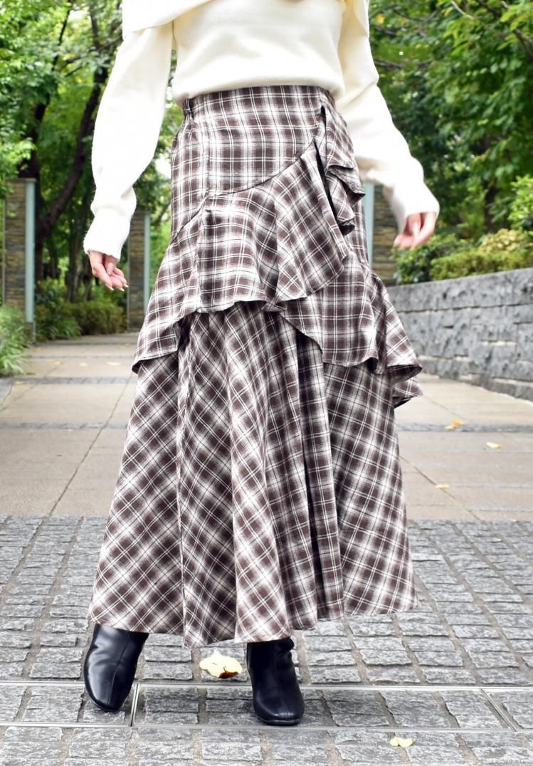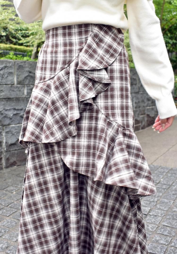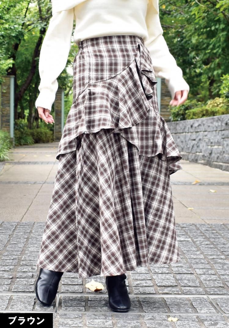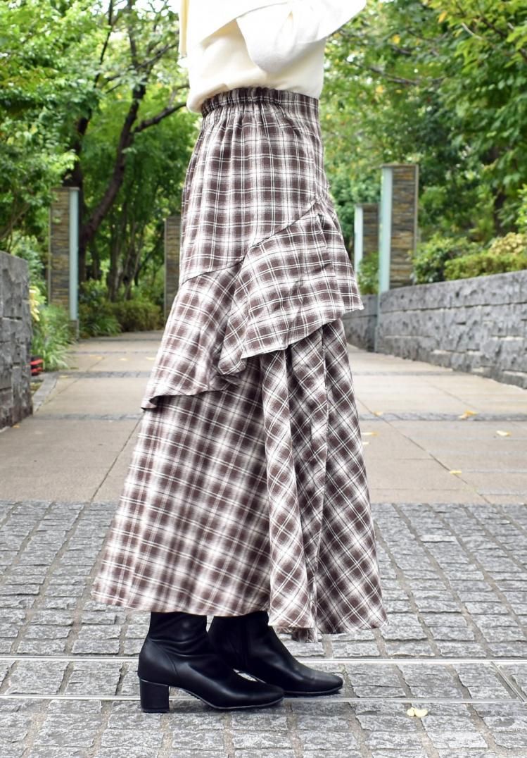 シーズンムード高まるチェック柄で、シンプルなトップスと合わせるだけで季節感のあるスタイルに仕上がります。
