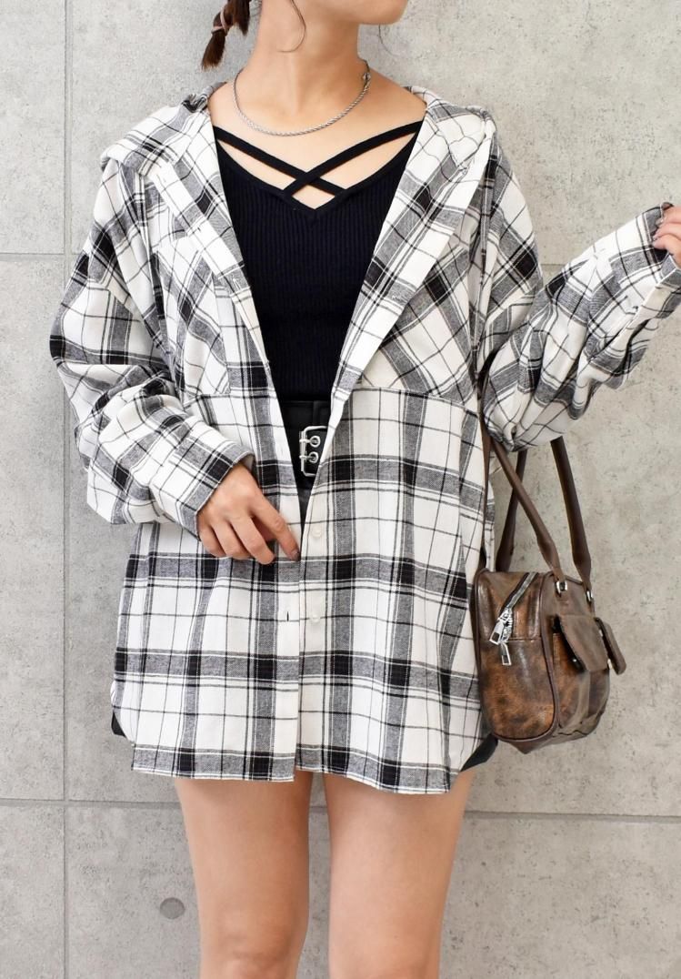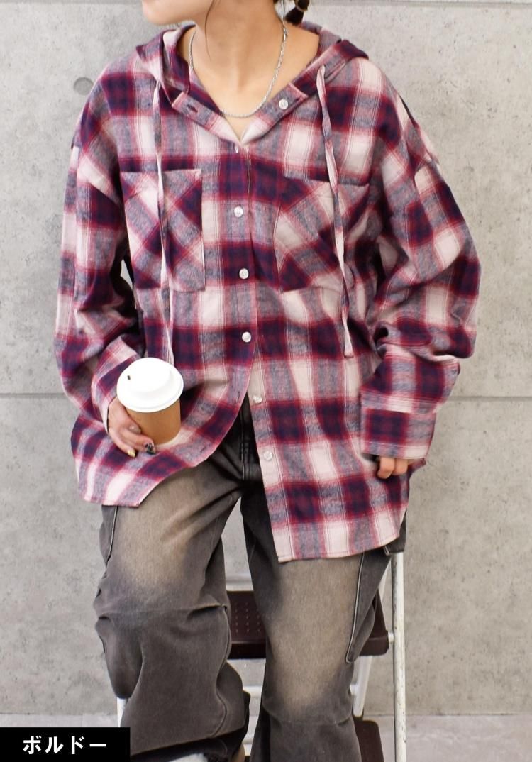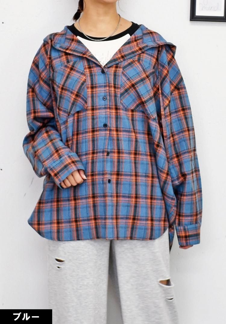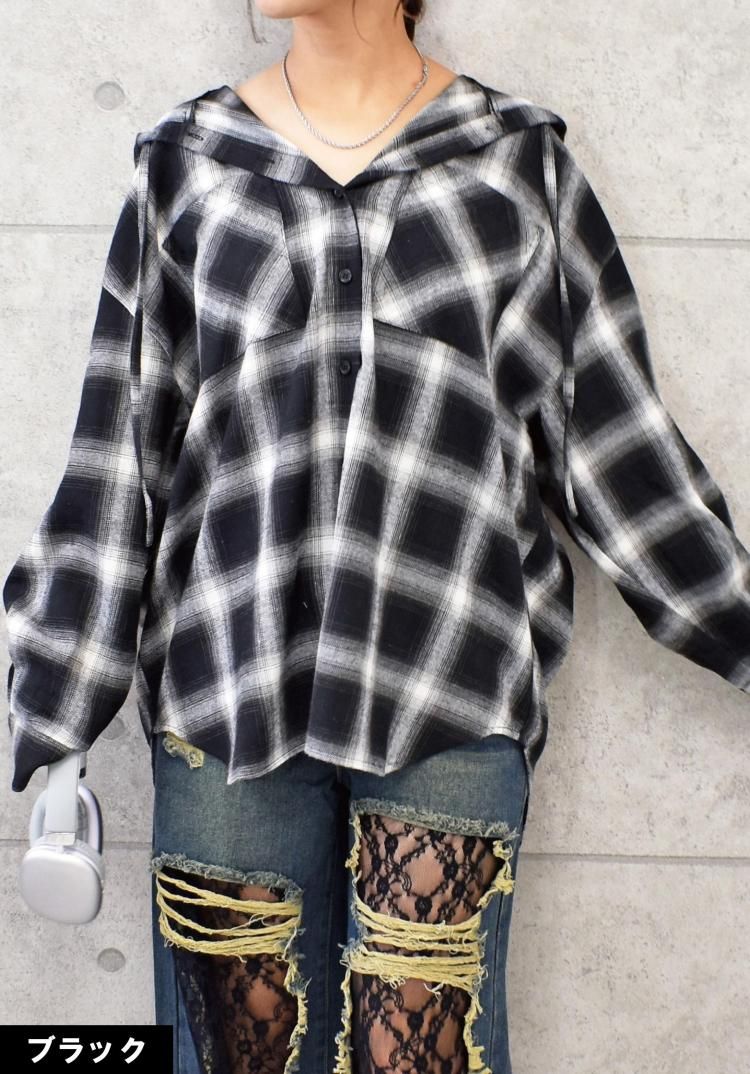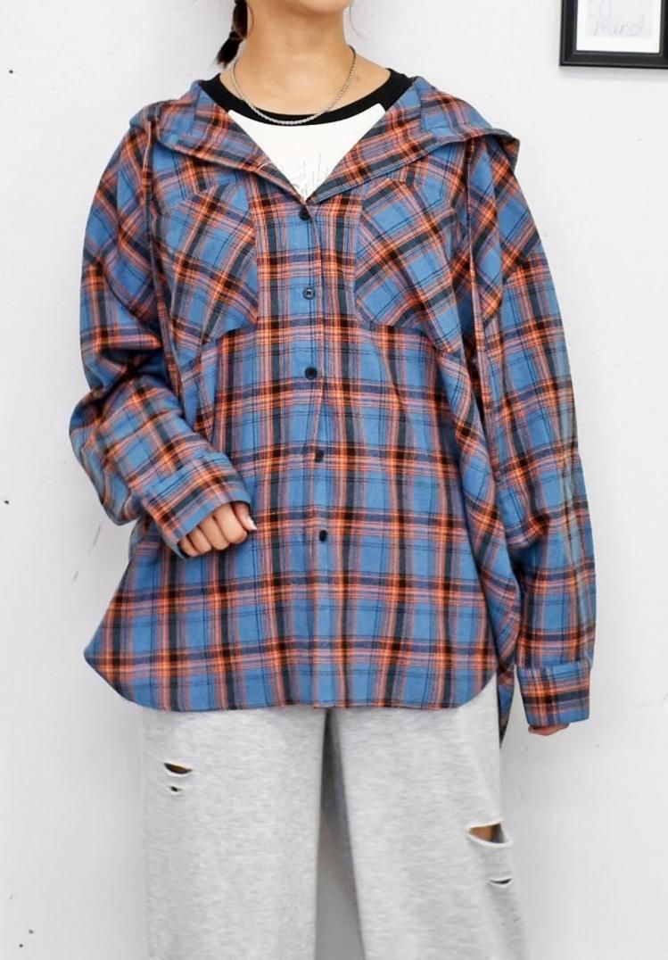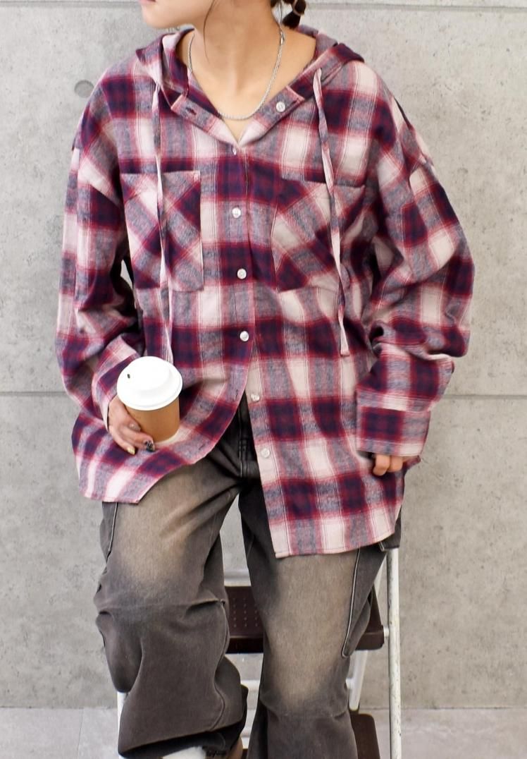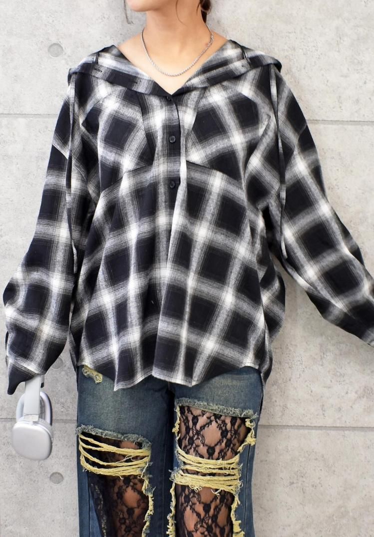 チェックフードBIGシャツ