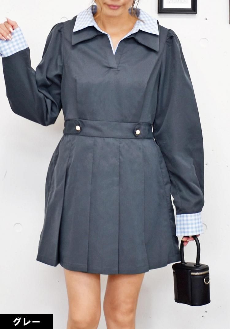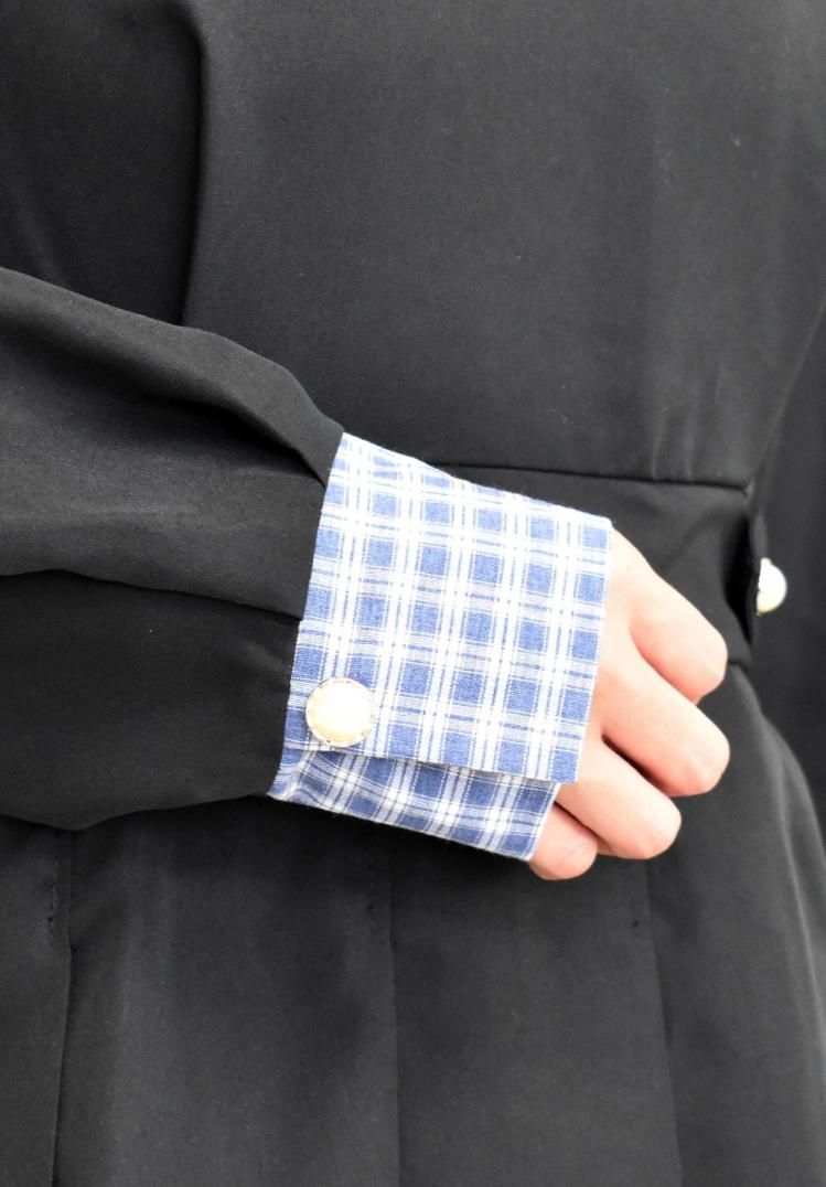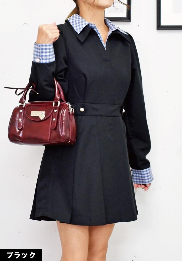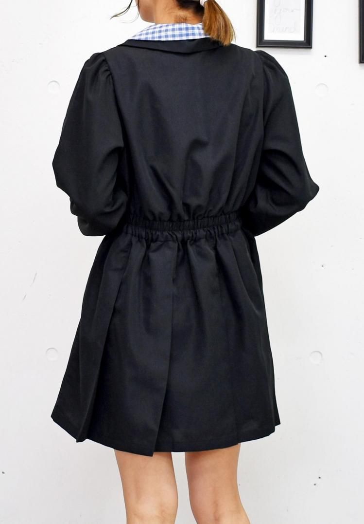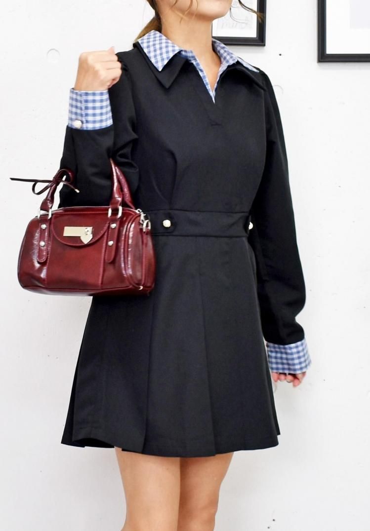 シックな色展開を基調に、チェックの襟元と袖口がアクセントになり、上品ながらも遊び心を感じられるワンピース。