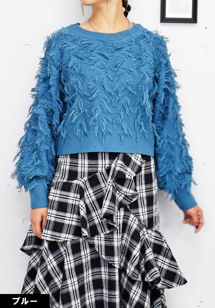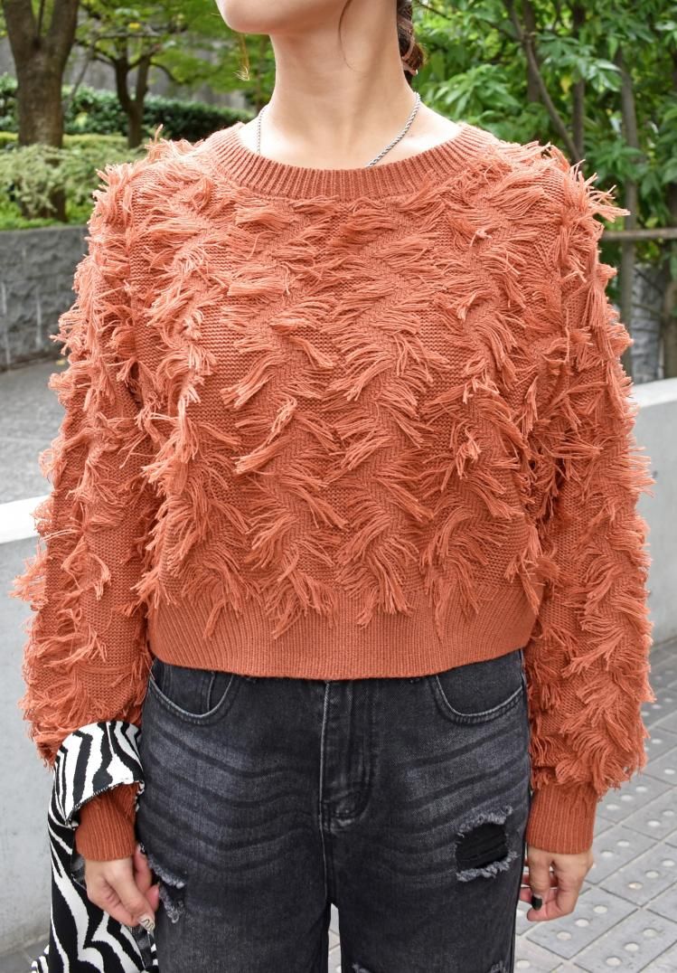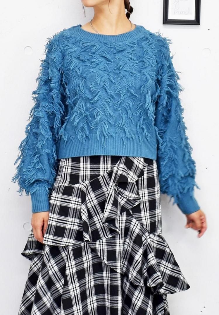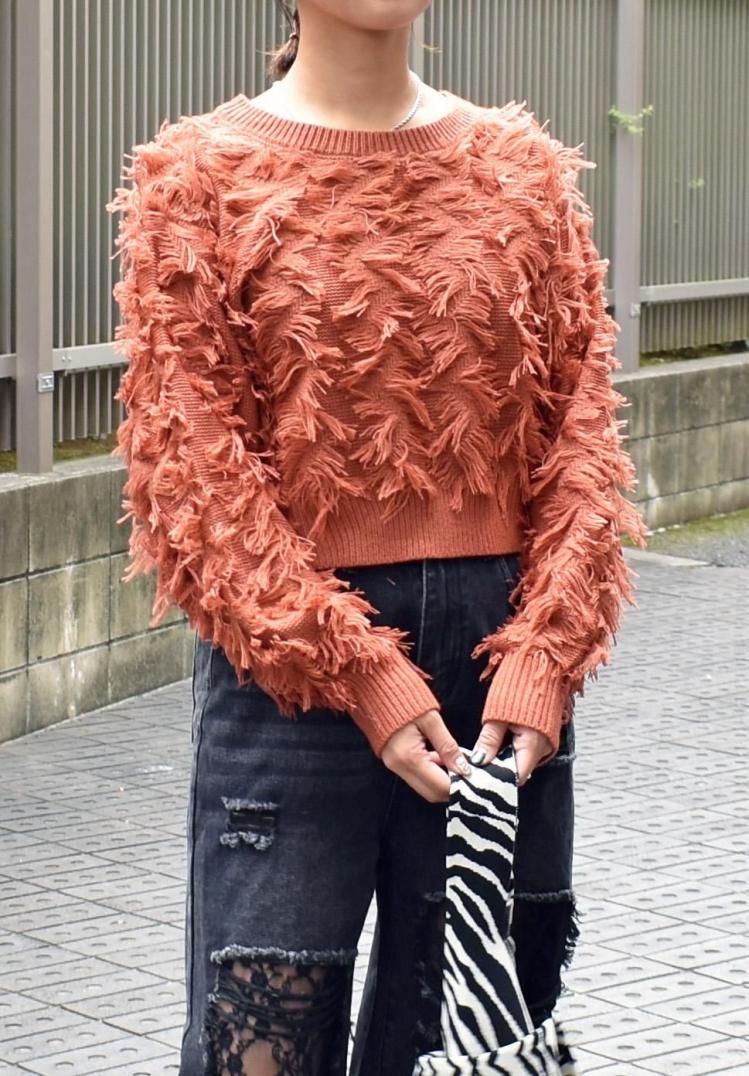 全体にあしらわれたフリンジが動きのある華やかな印象に。