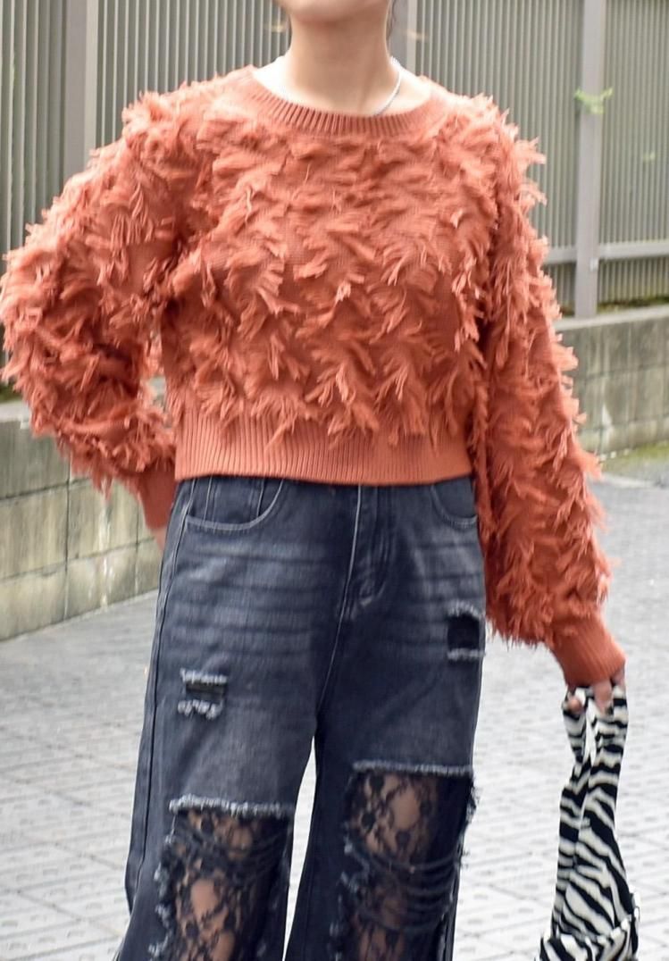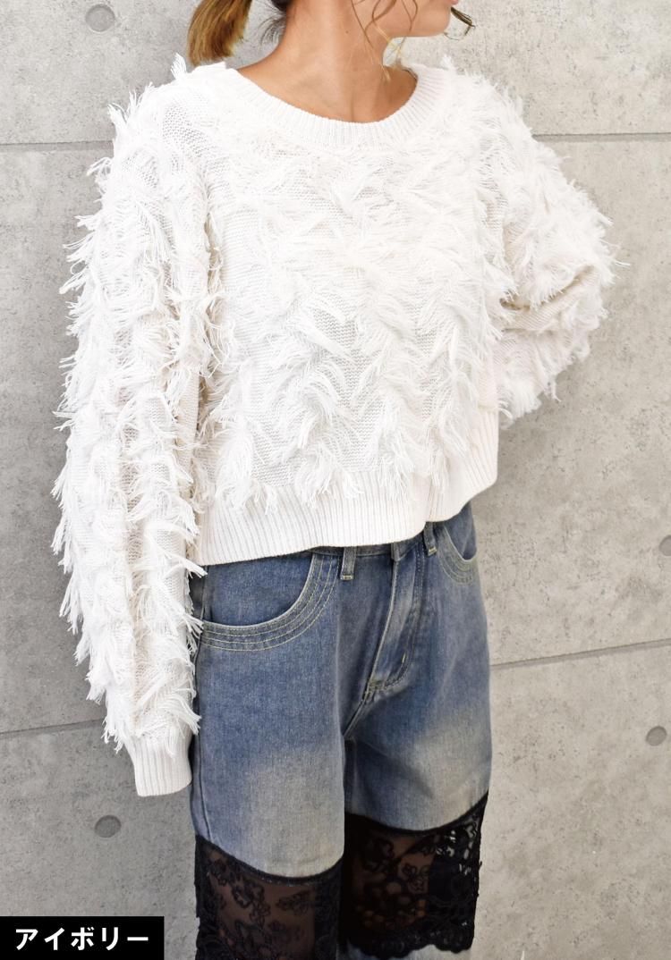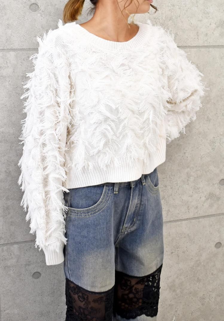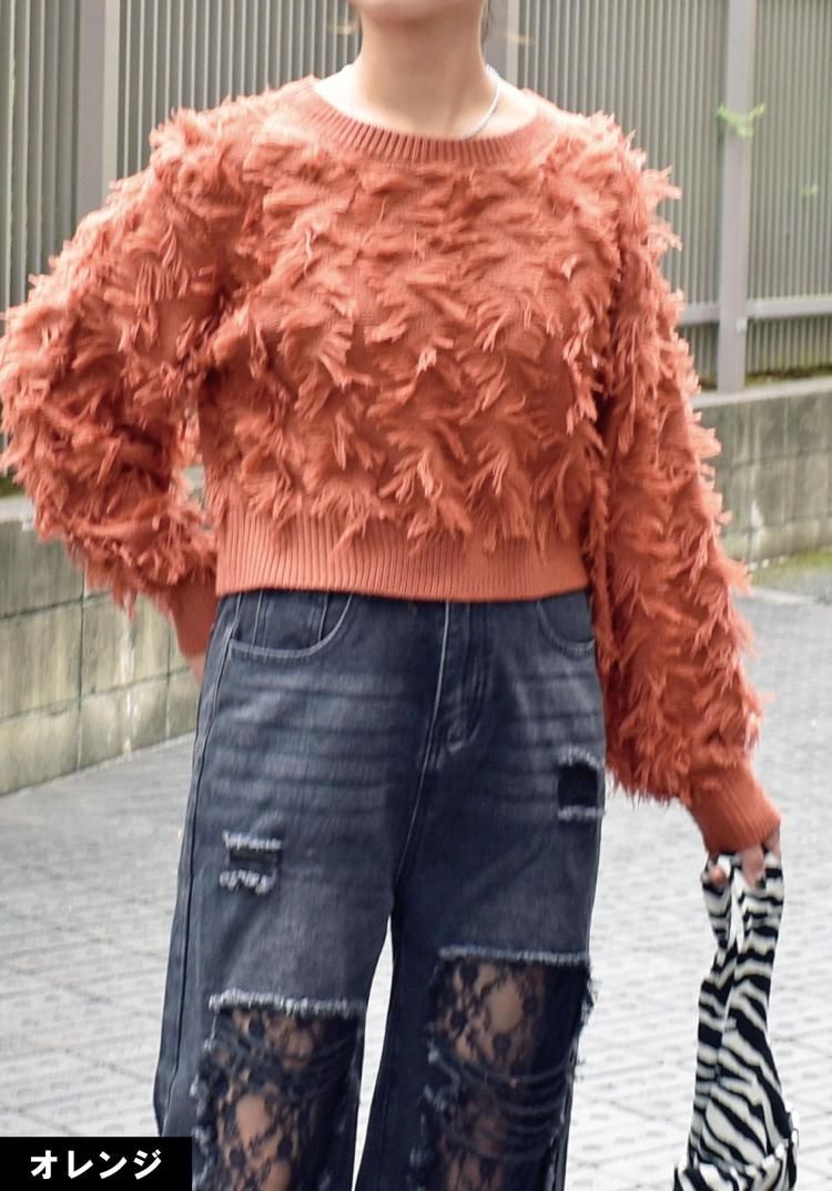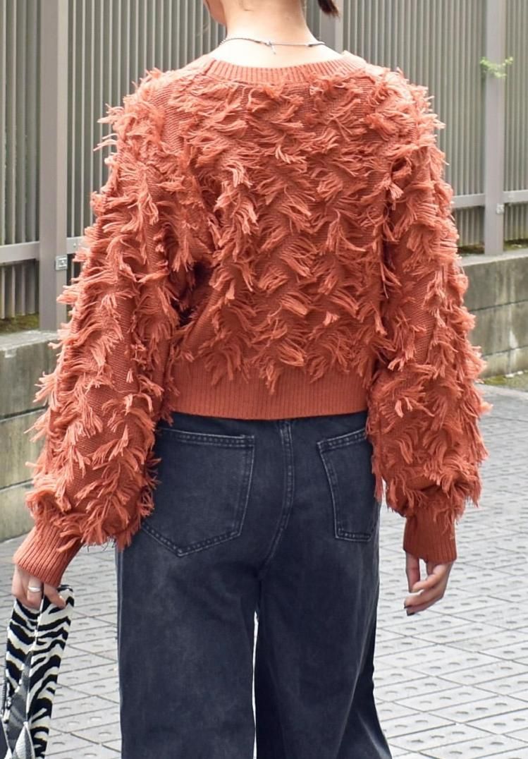 全体にあしらわれたフリンジが動きのある華やかな印象に。
