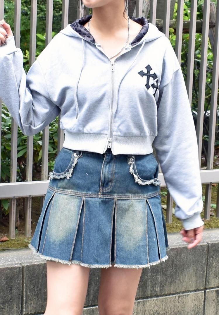 フロントジップ仕様なので、羽織りとしてもトップスとしても使える万能アイテム。