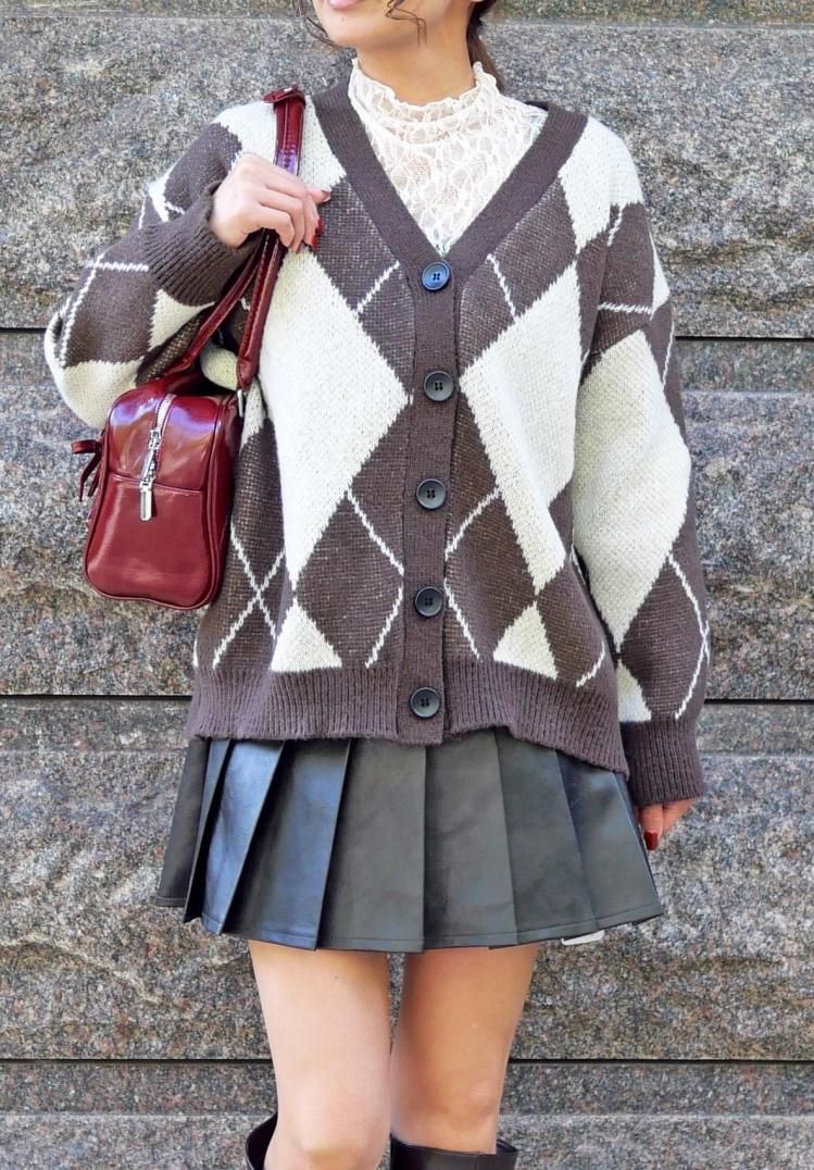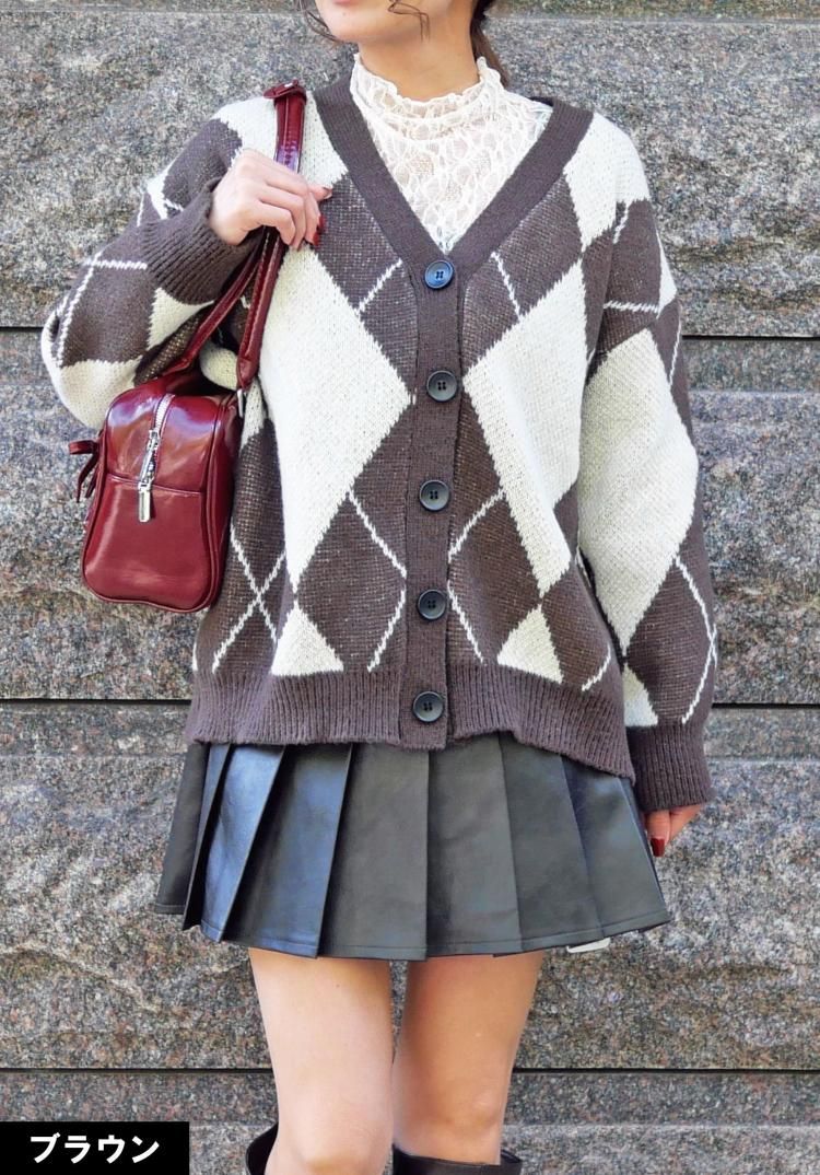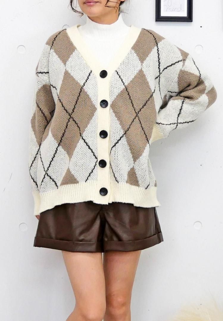 トラッドな雰囲気を漂わせるアーガイル柄が印象的なカーディガン。