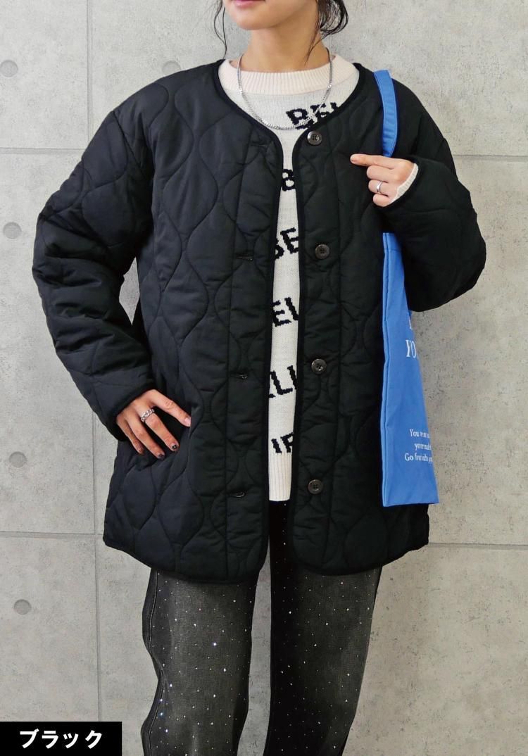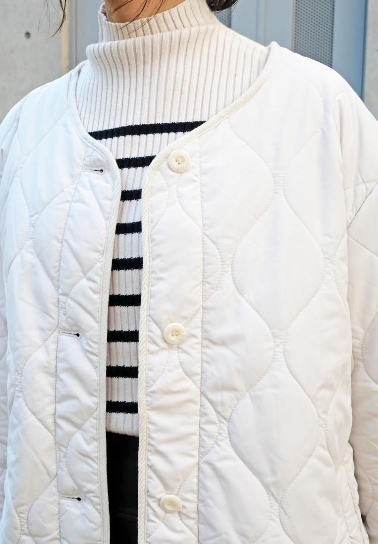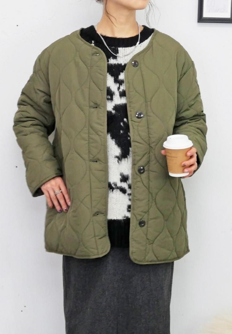 キルティングによって中綿のボリュームが抑えられるため、ダウンジャケットなどに比べて着ぶくれしにくく、スマート着こなせます。