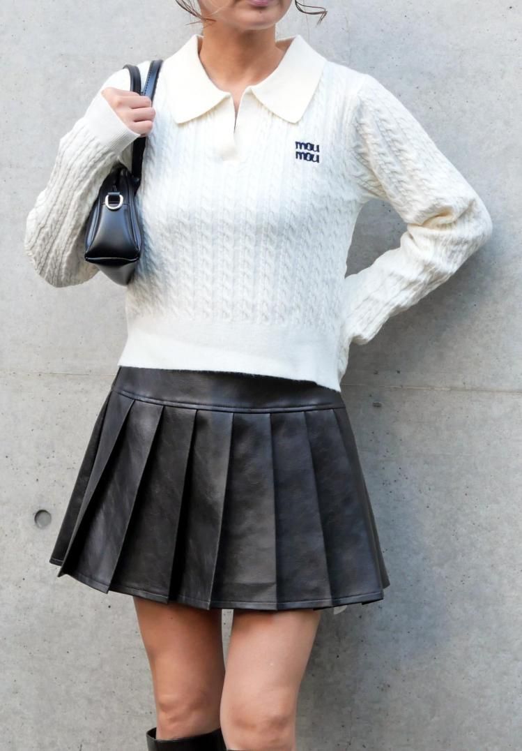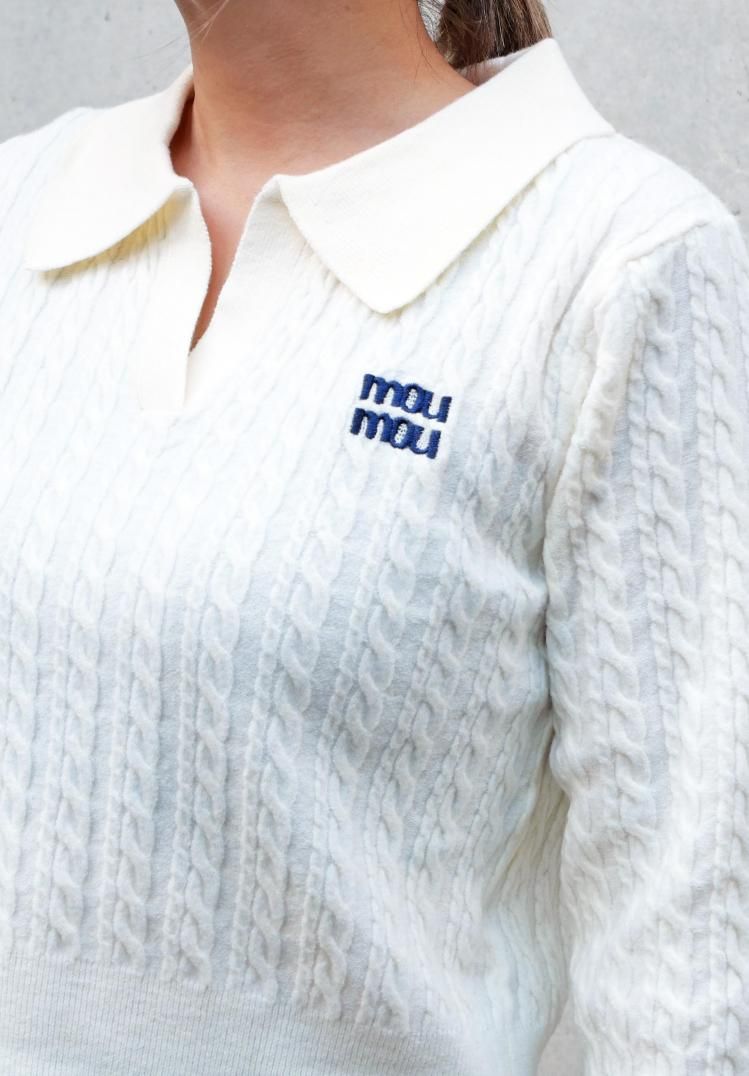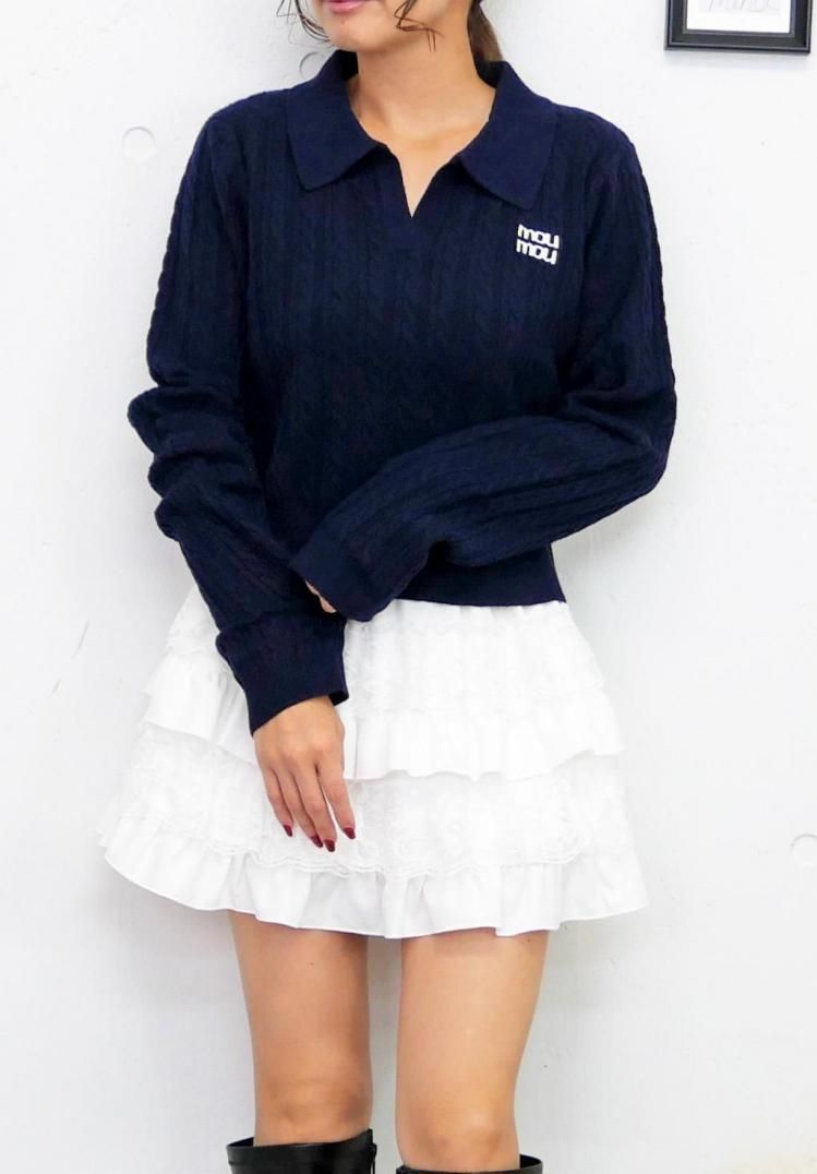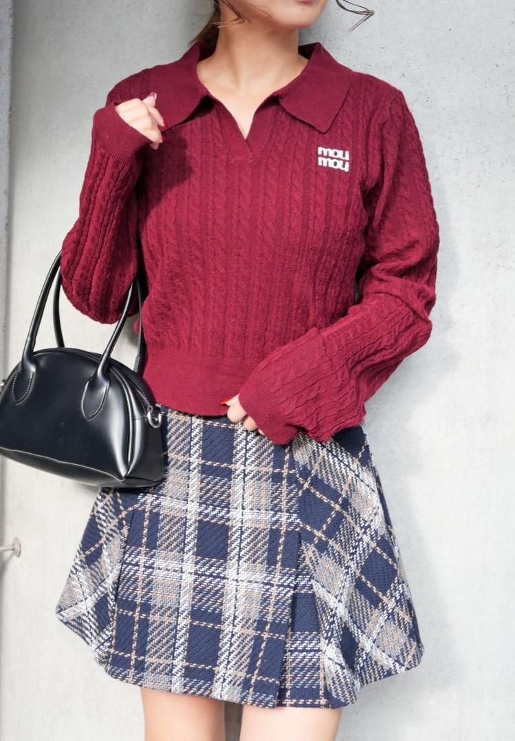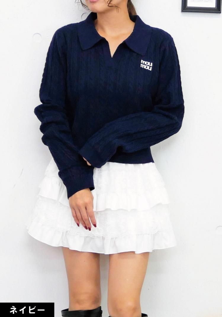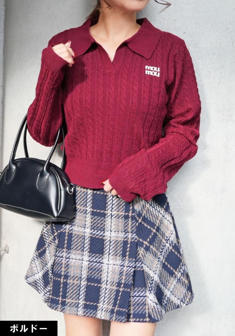 トレンドのポロ襟で、カジュアルながらもトラッドで大人っぽい印象のケーブルニット。