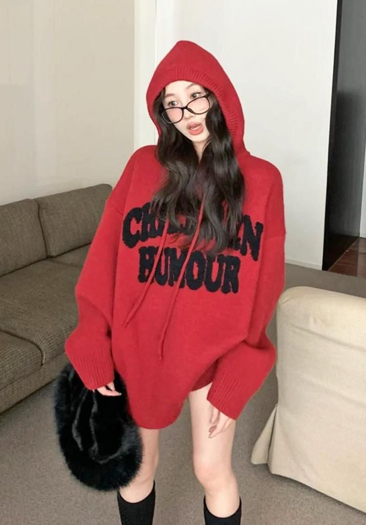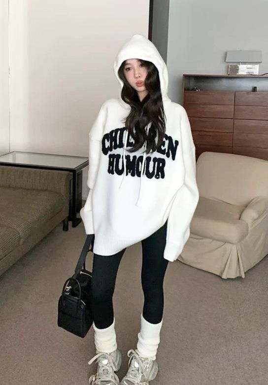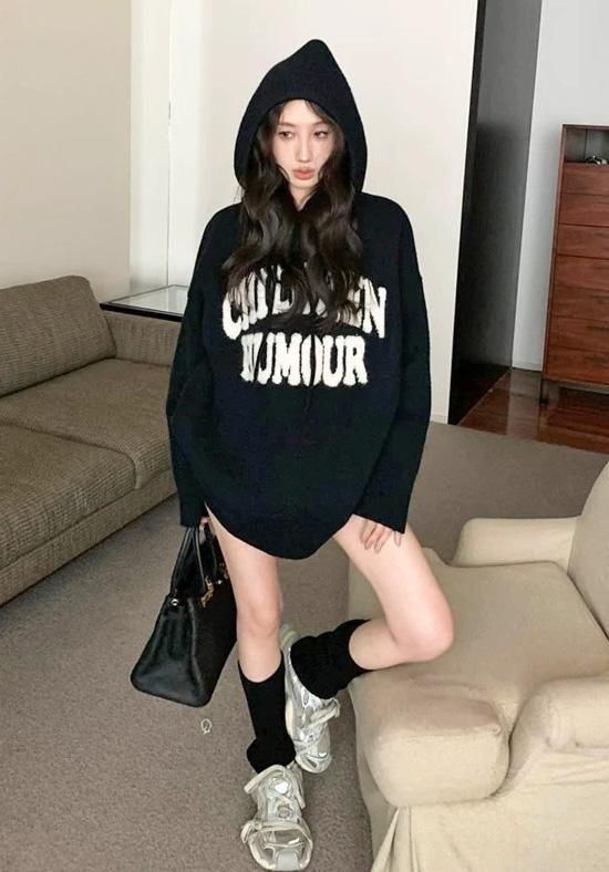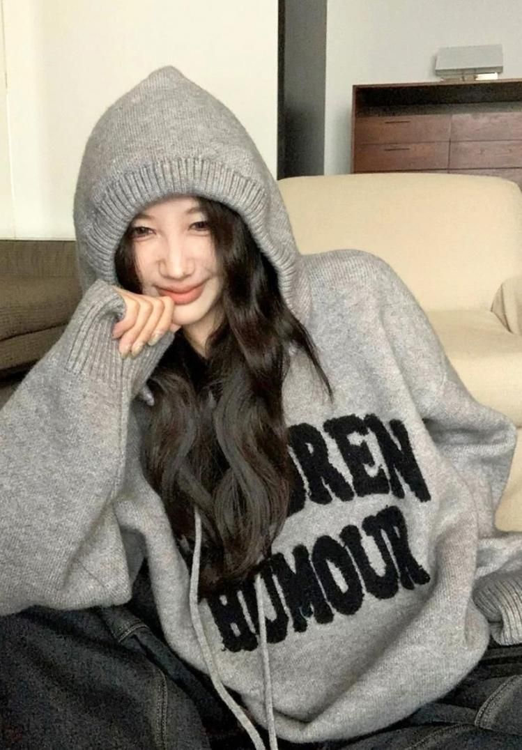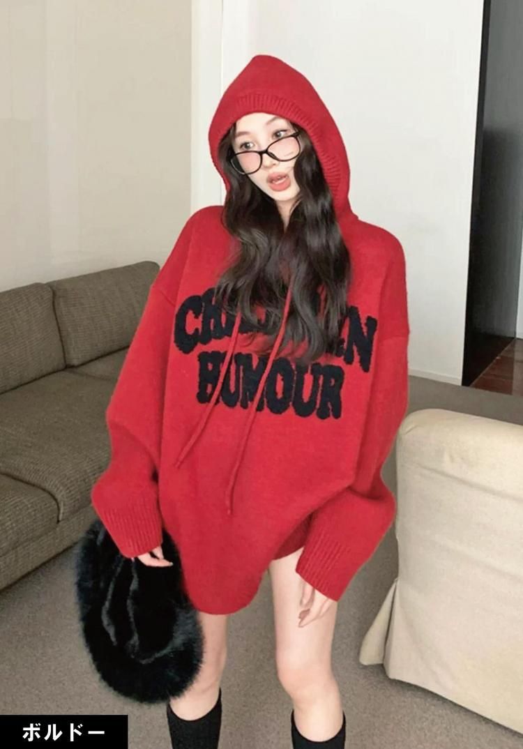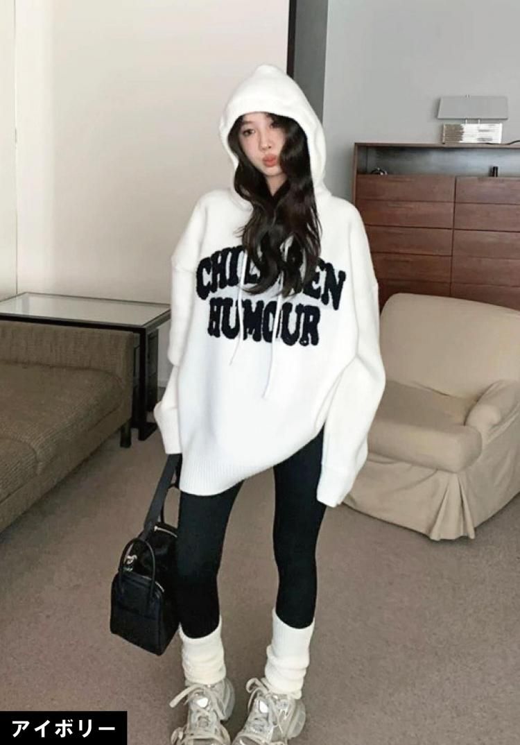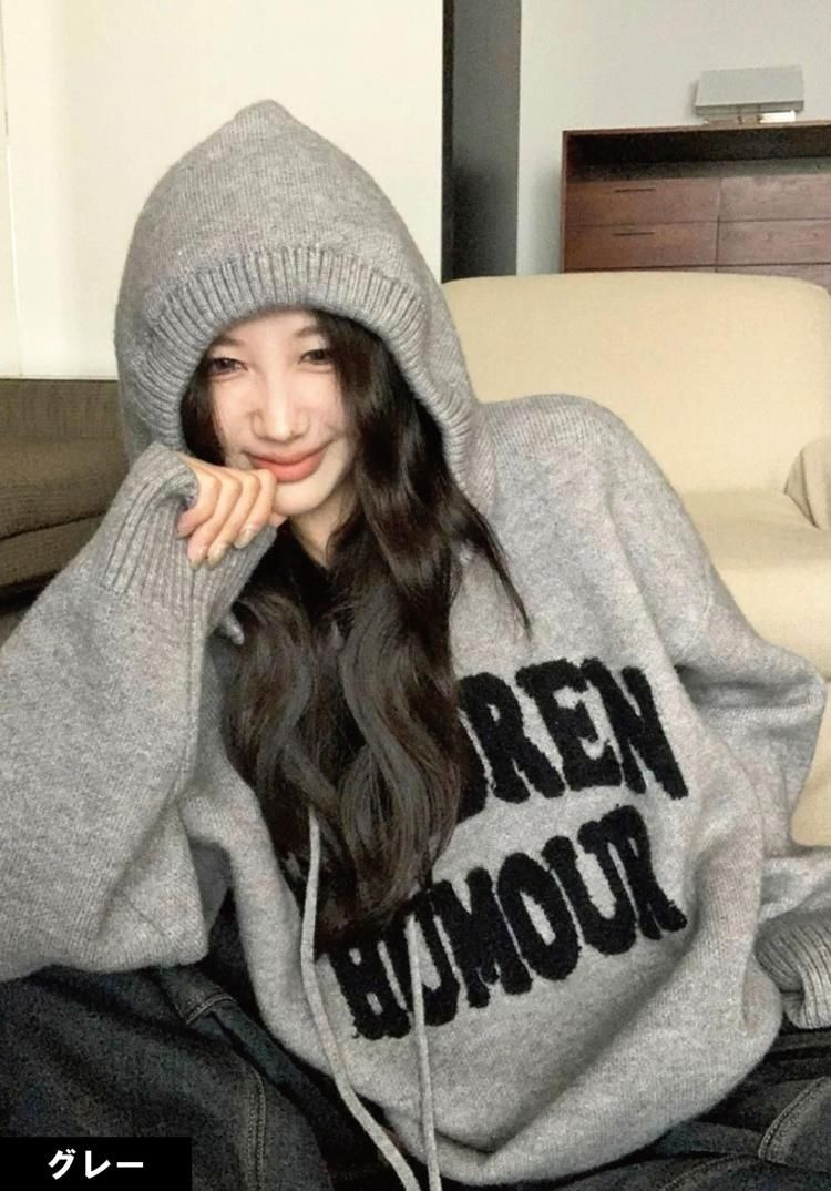 カジュアルなパーカーをニット素材にすることで、ストリートな雰囲気を残しつつ、暖かみと女性らしい柔らかさをプラス。