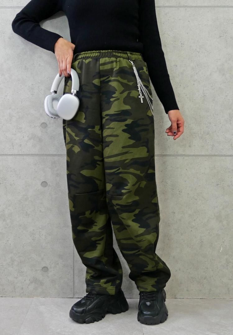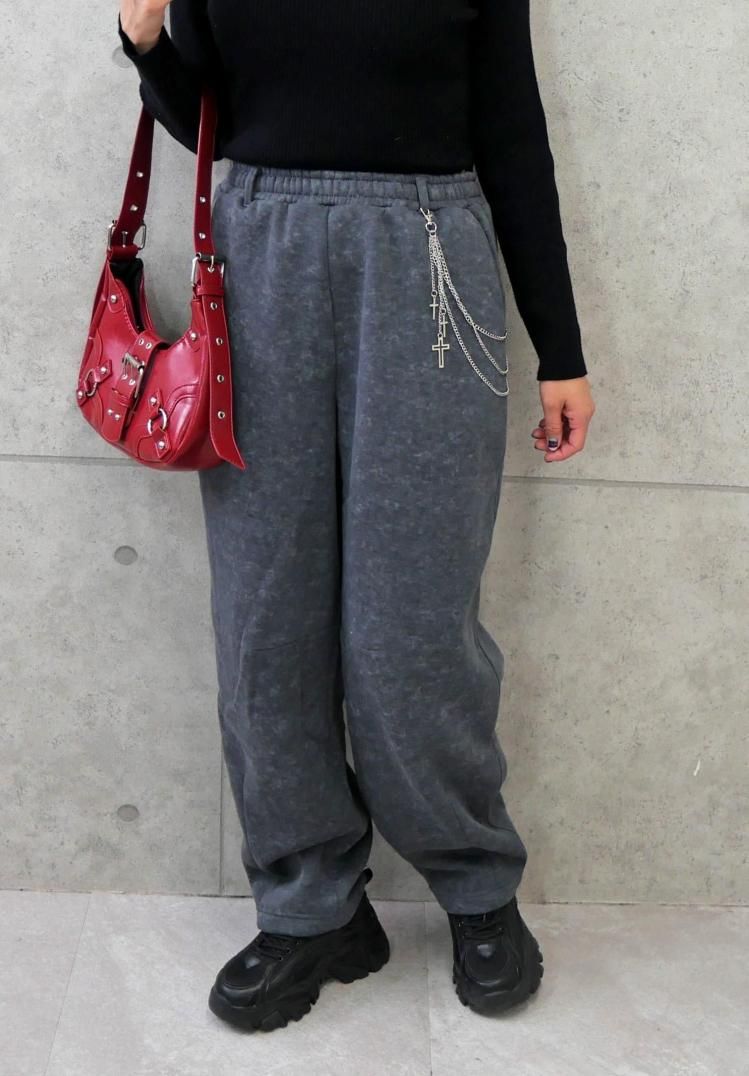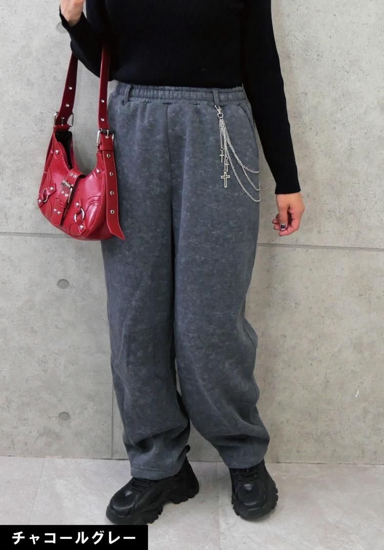 取り外し可能なチェーンがアクセントになった、ストリート感たっぷりのスウェットパンツ。