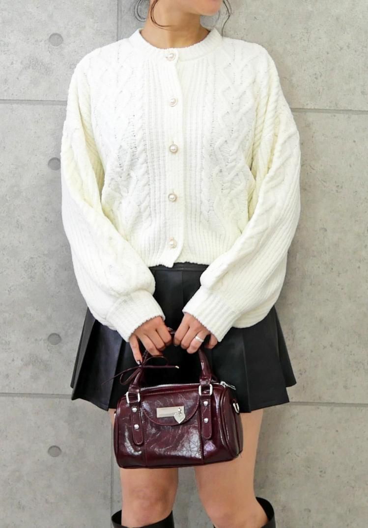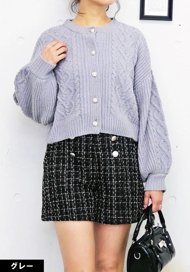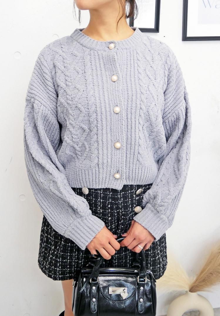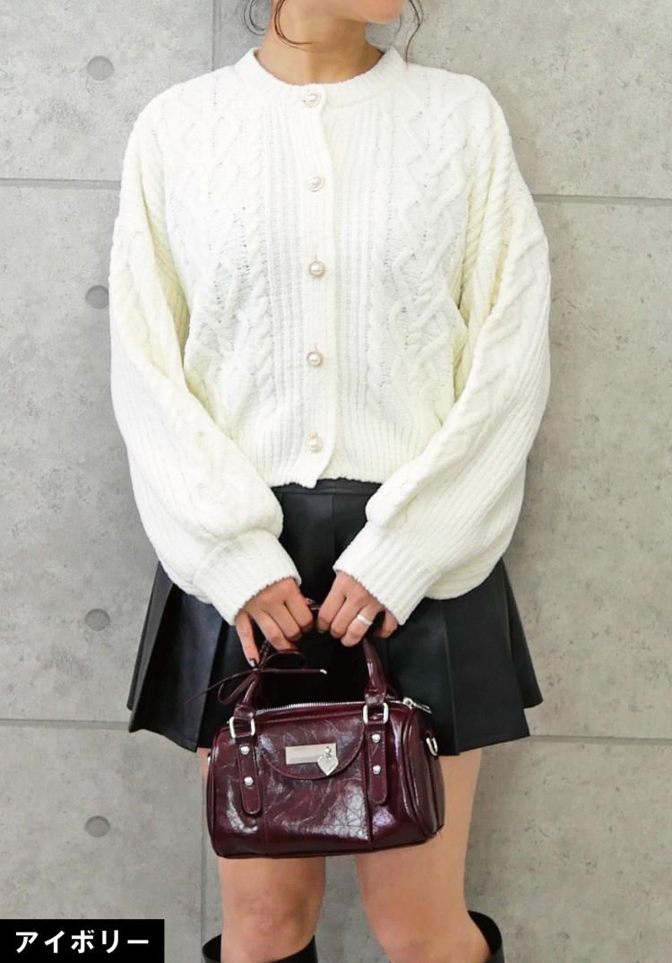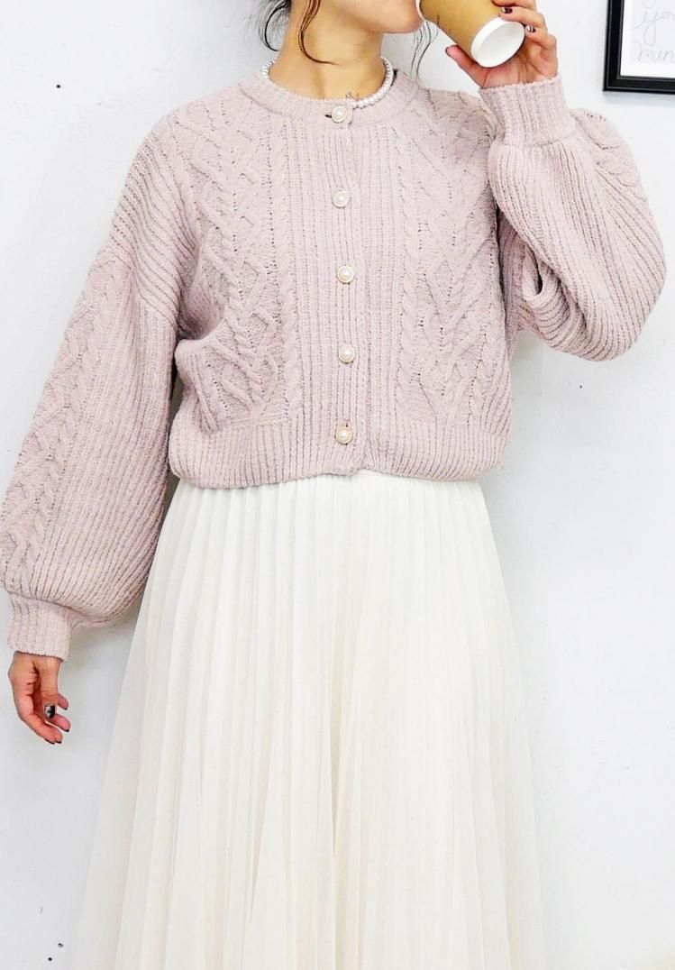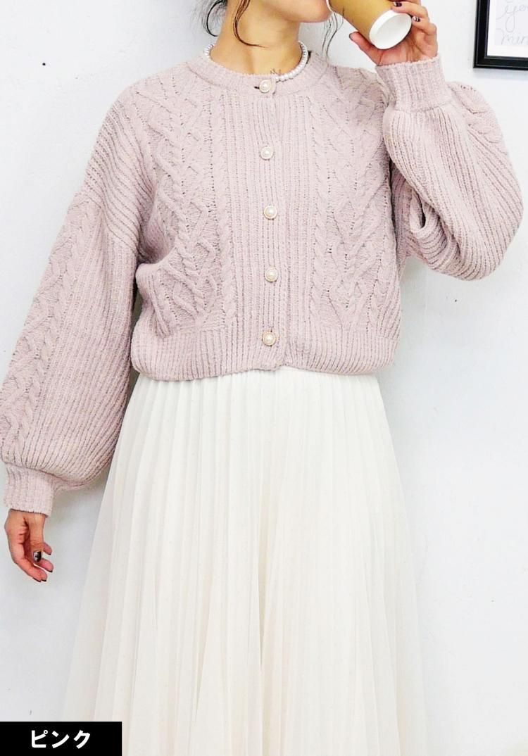 ふわふわとした柔らかな肌触りが魅力のモールニット素材を使用した、上品で高見えするケーブルカーディガン。