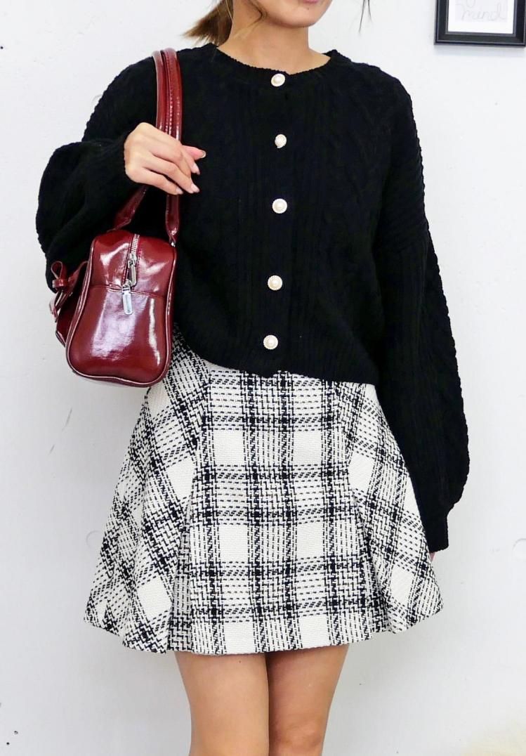 フロントのパールボタンが華やかさを添え、シンプルながらも存在感のあるデザインに。