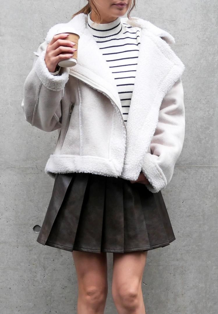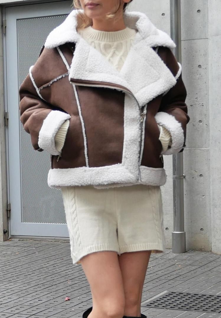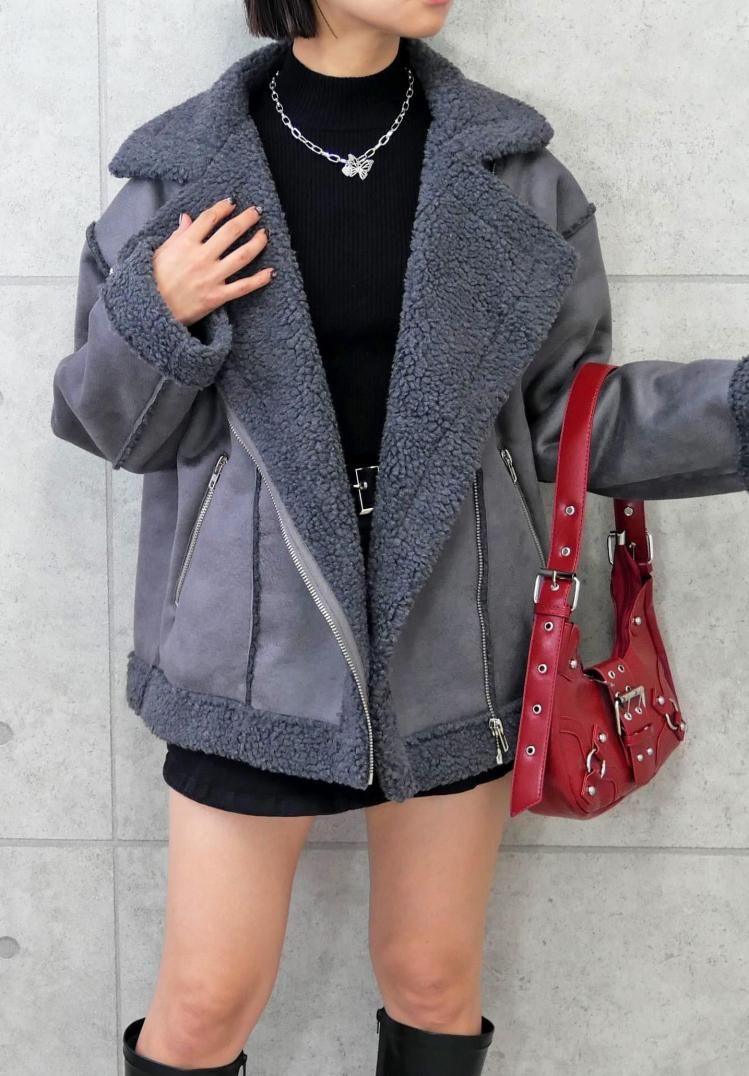 ライダースジャケットのデザインと大きな襟が、甘くなりがちなムートン素材にクールで辛口なエッセンスを加え、幅広い着こなしを楽しめます。