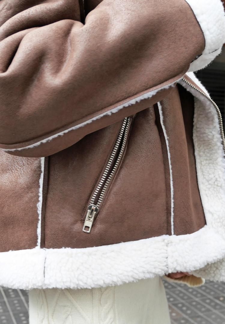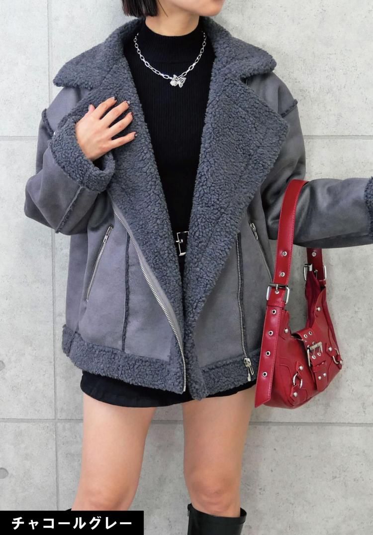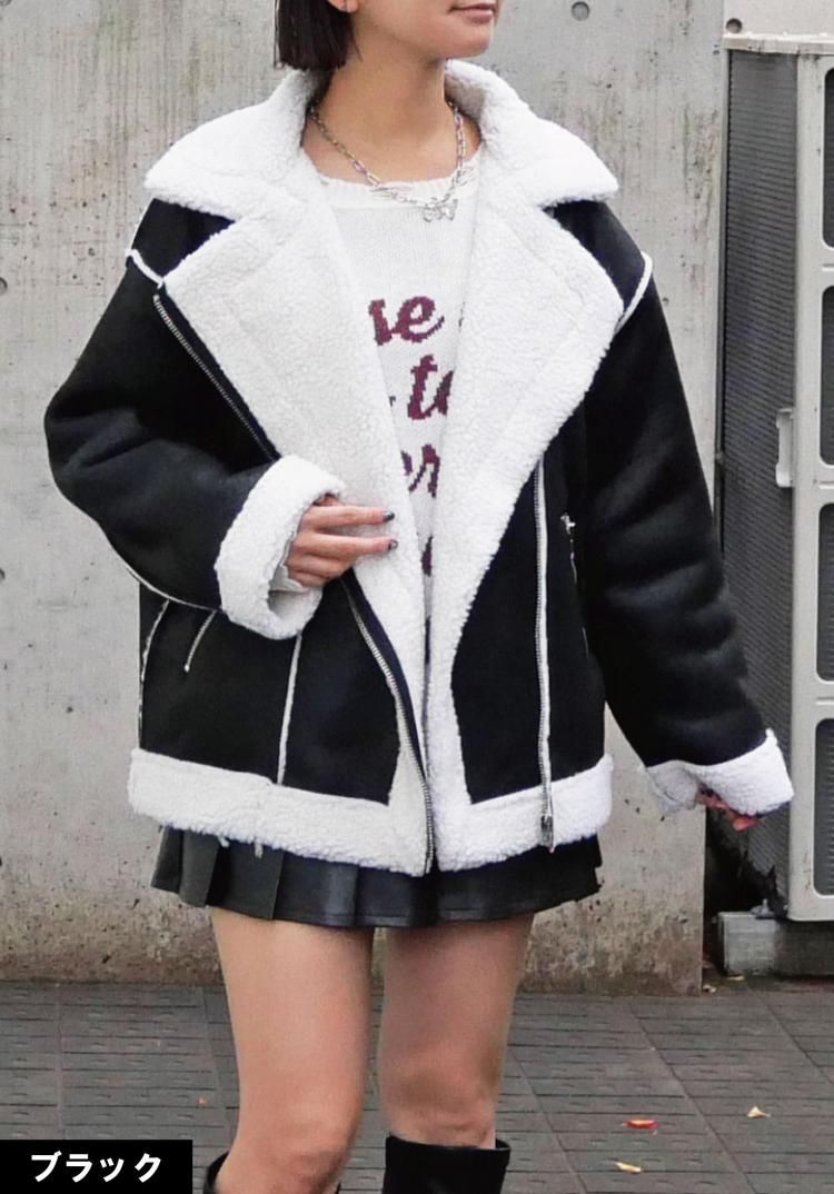 内側が総ボアになっており、高い保温性と暖かさで、真冬でもしっかり防寒できるムートンライダースジャケット。