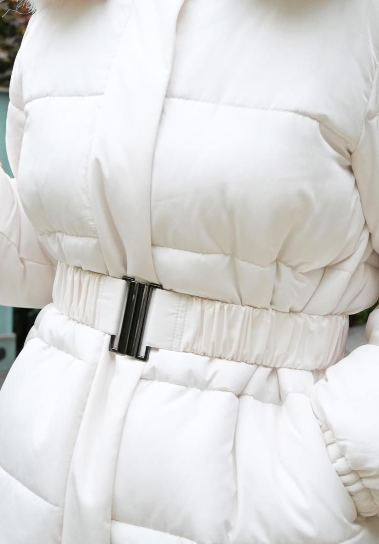ウエストベルトが腰の位置を高く見せ、着膨れしがちなダウンでもメリハリのある美しいシルエットを実現します。