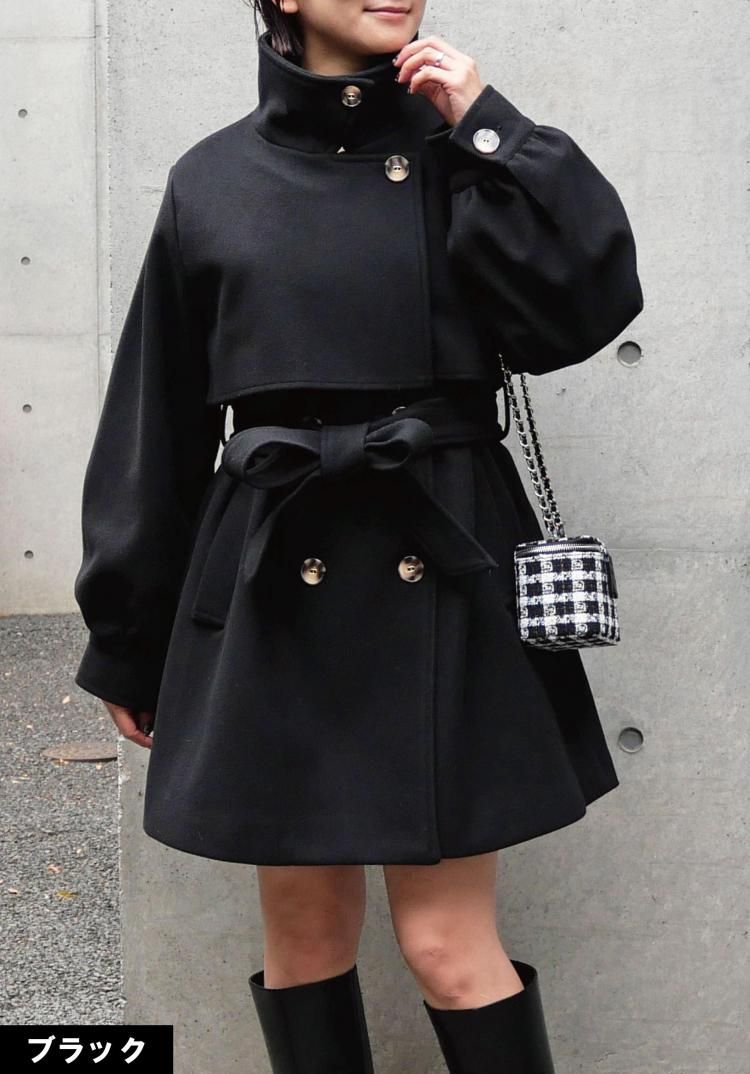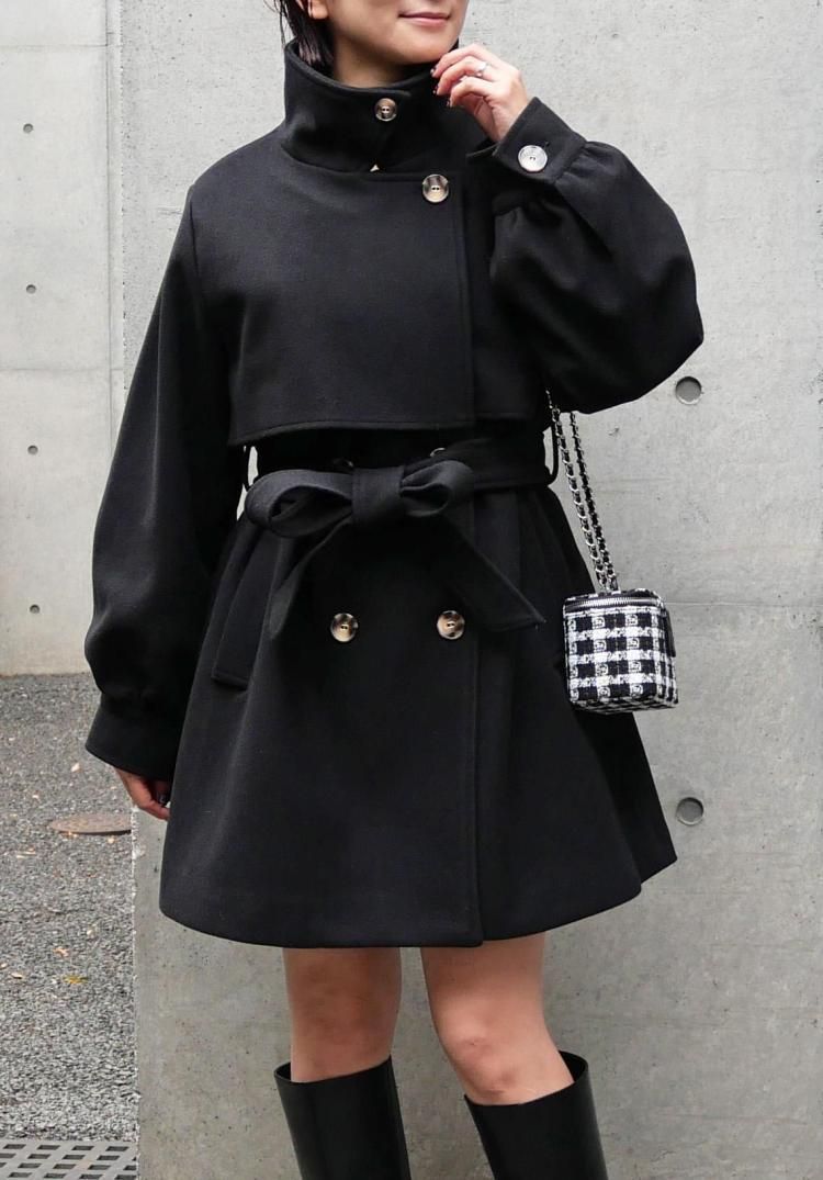 襟元がスタンドカラーにもなる2WAY仕様で、きちんと感のあるトレンチ風と、防寒性も兼ね備えたモードな立ち襟スタイル、2つの表情を楽しめます。