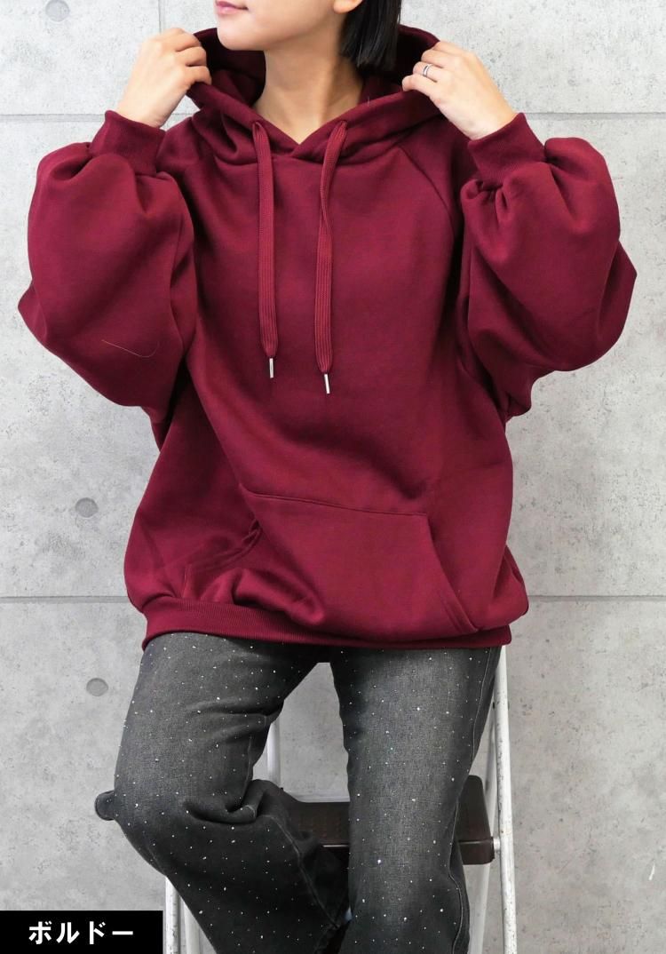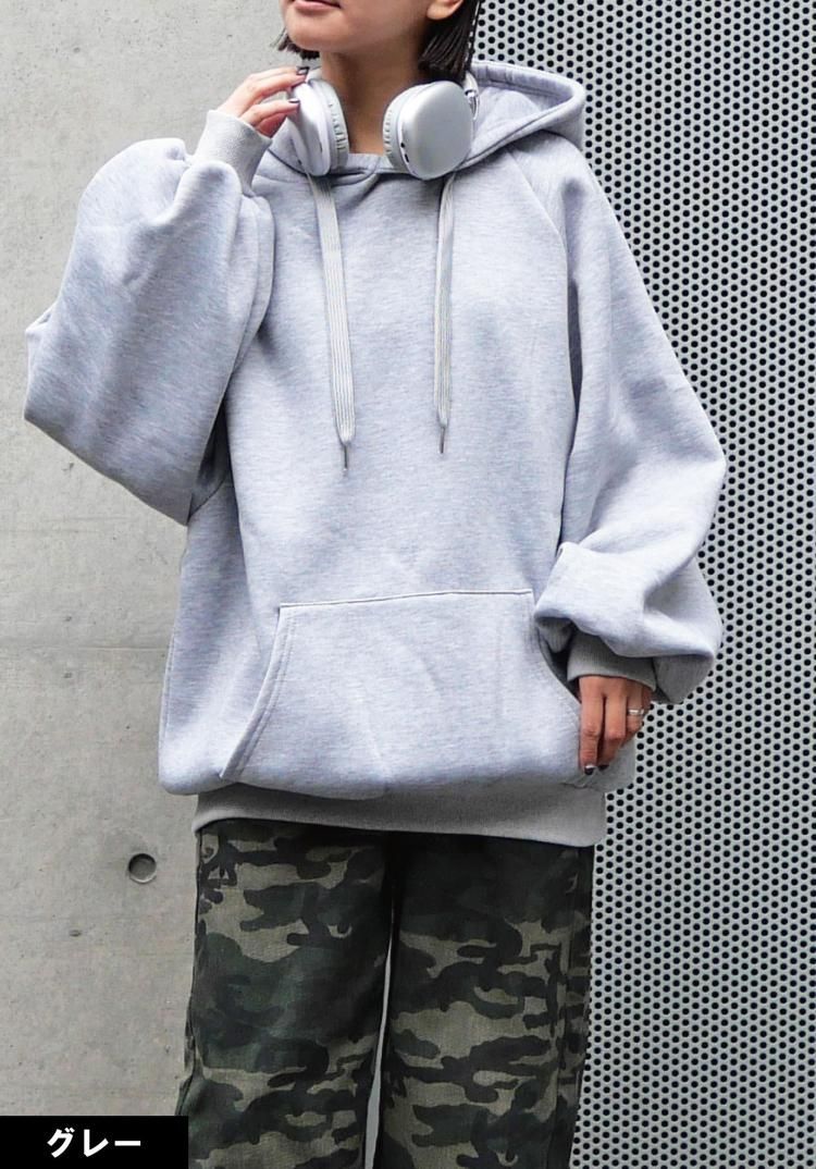 高い保温性を備えた裏起毛素材で、寒い季節でも暖かく快適に過ごせるビッグパーカー。