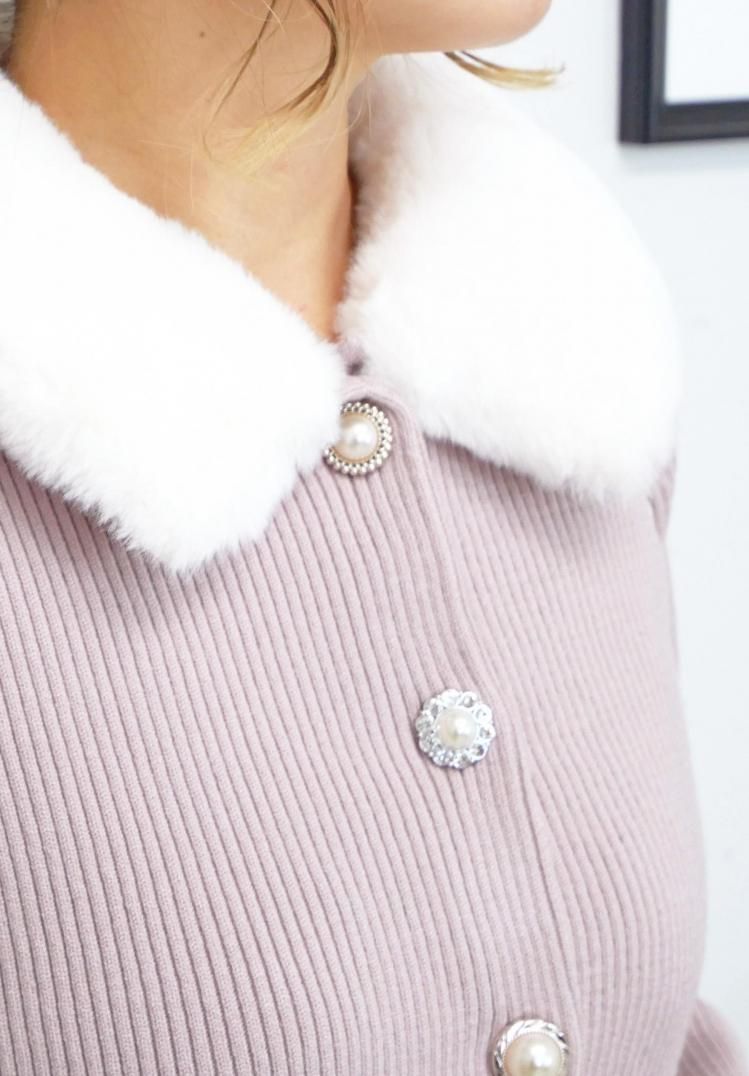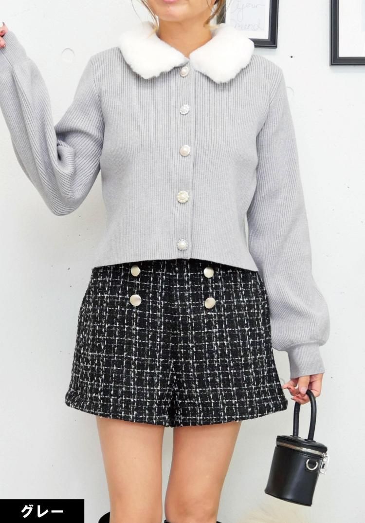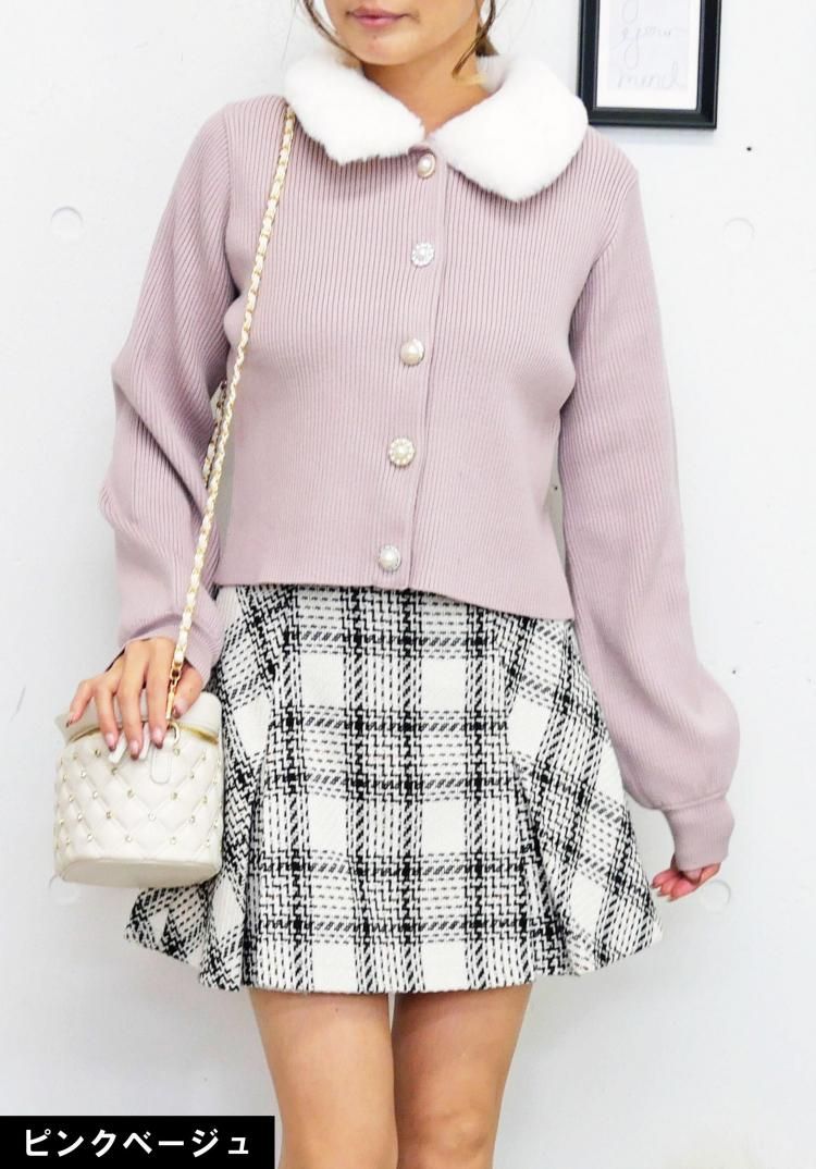取り外し可能なファー襟付きで、華やかにもシンプルにも着こなせる2WAY仕様のニットカーデ。