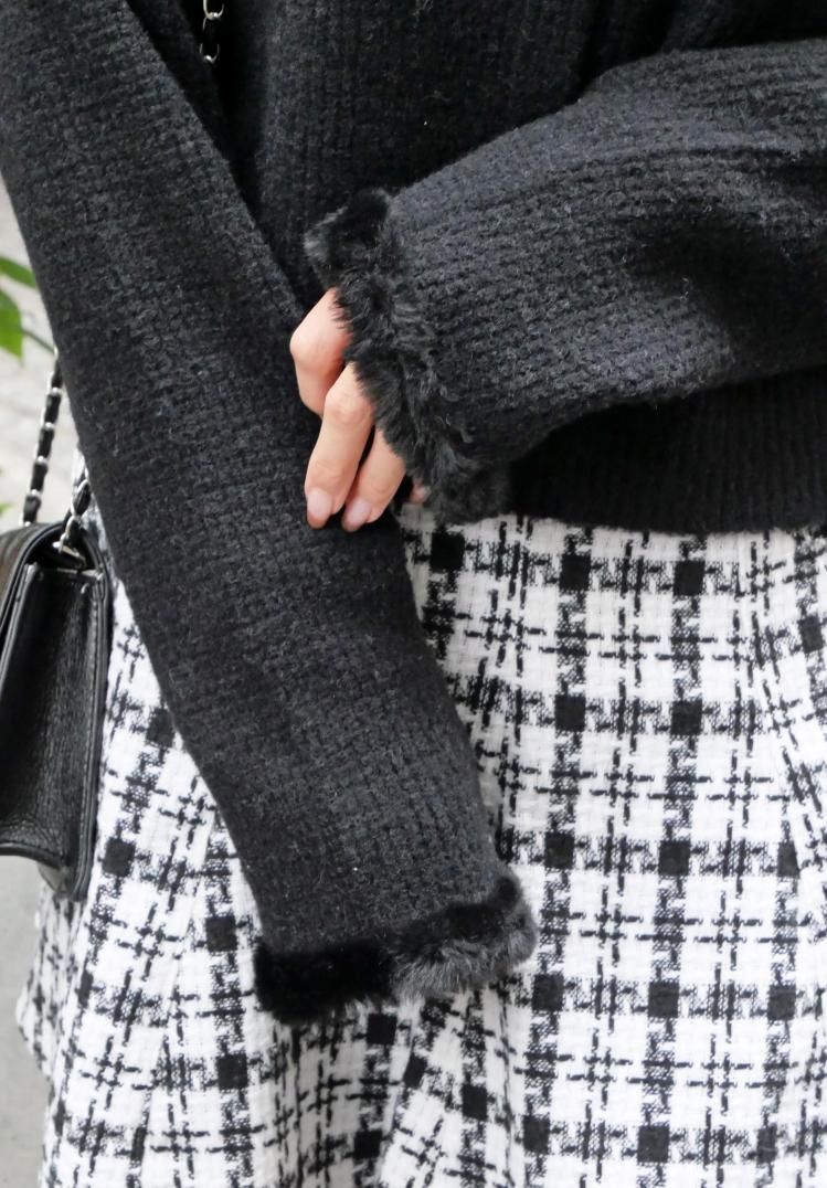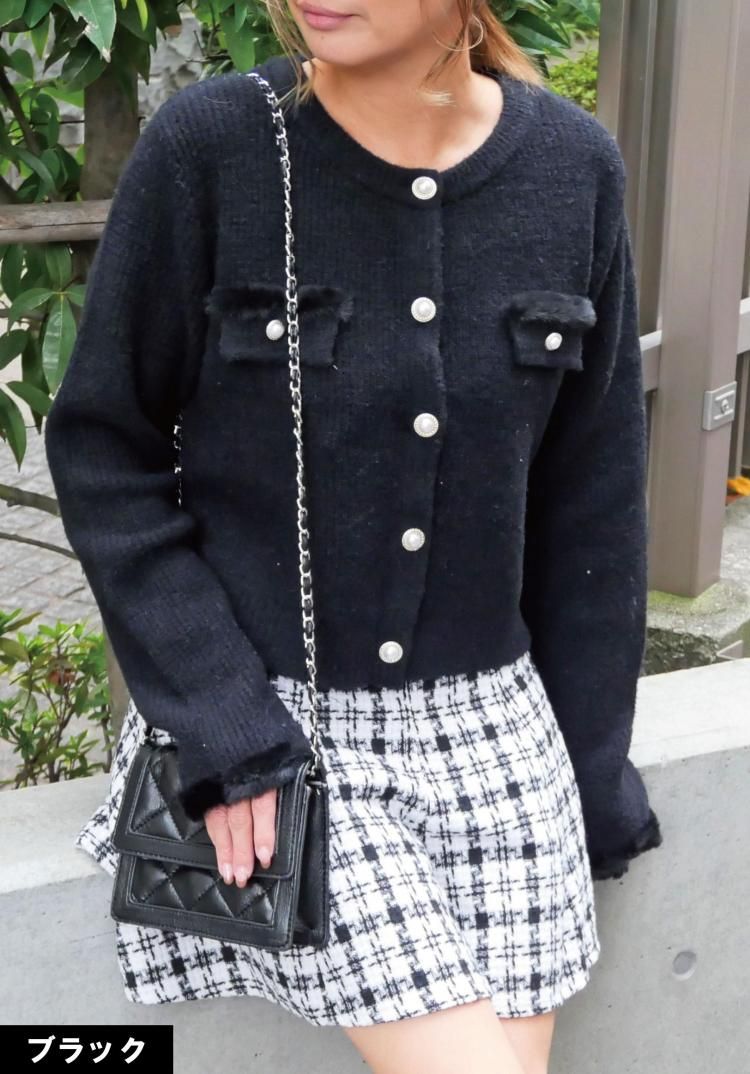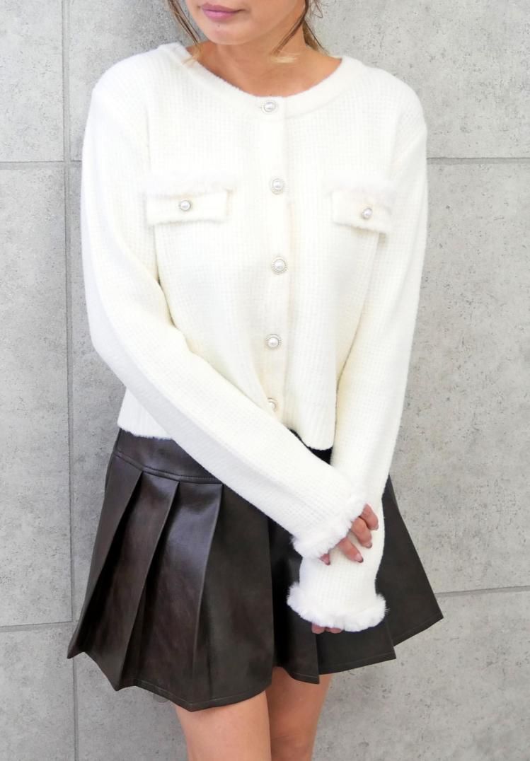 胸ポケットと袖口にシャギー素材が施されており、シンプルながらリッチな質感と季節感をプラスします。