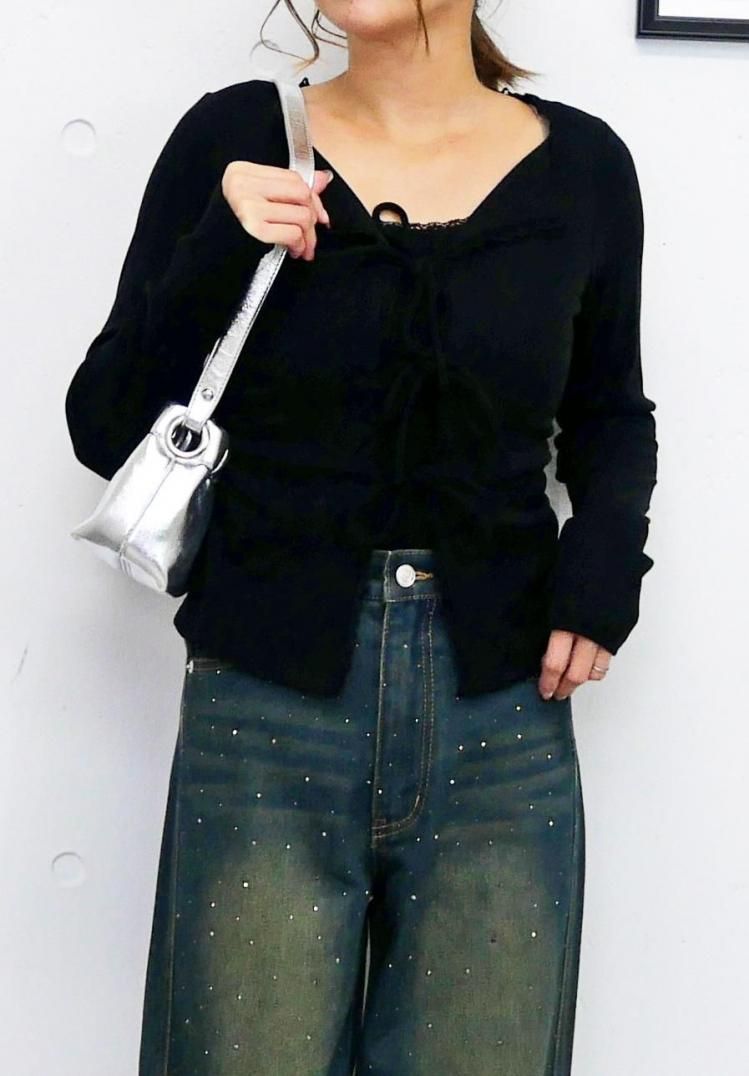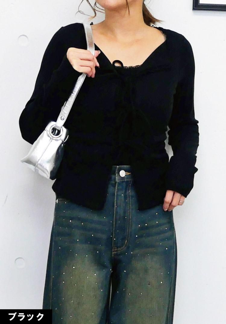 見せかけのレースインナーが縫い付けられているため、重ね着の手間なく、トレンド感のあるロマンティックなレイヤードスタイルが楽しめます。