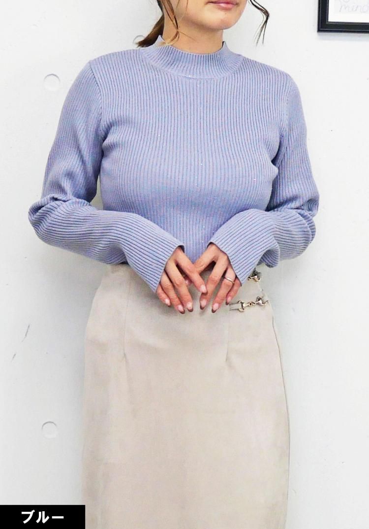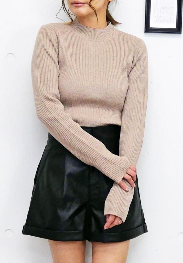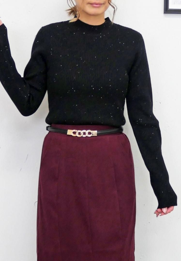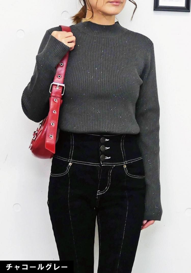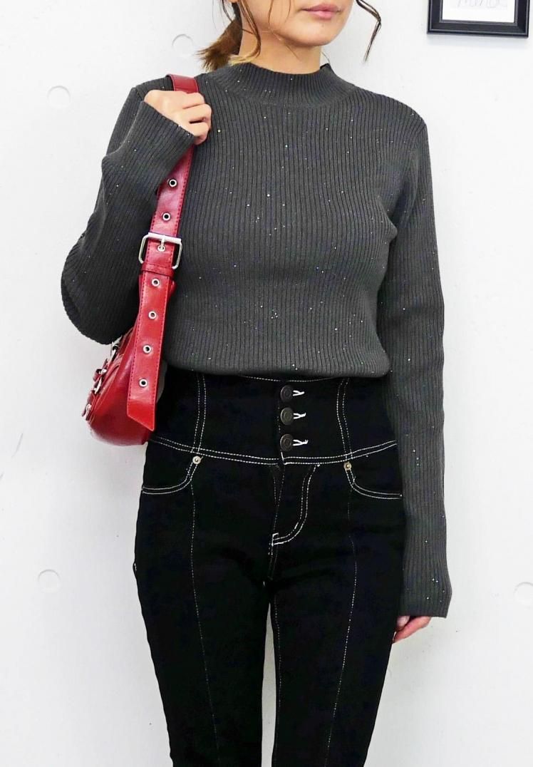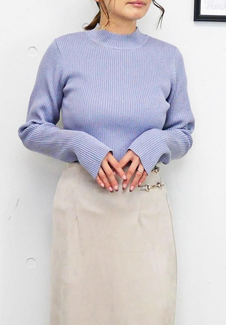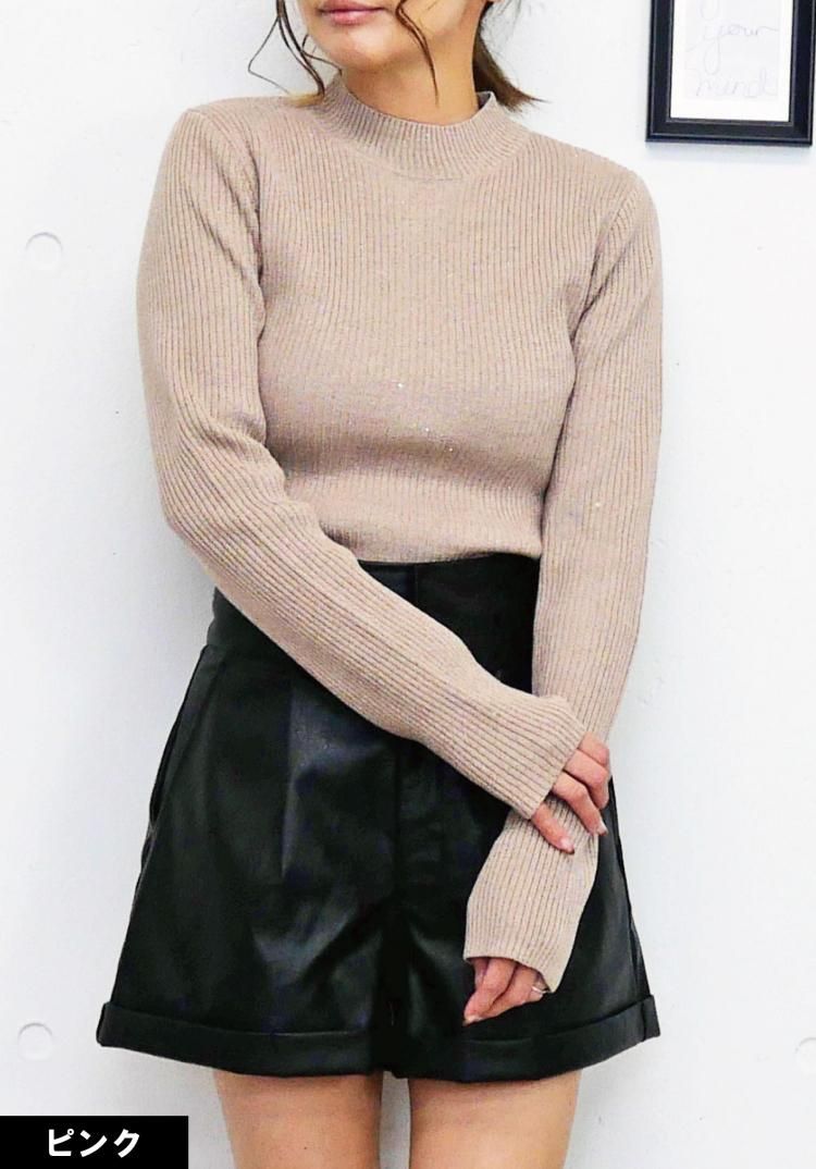 さりげなく散りばめたスパンコールが光を受けて上品に輝き、冬コーデに華やかさをプラスするプチハイニット。