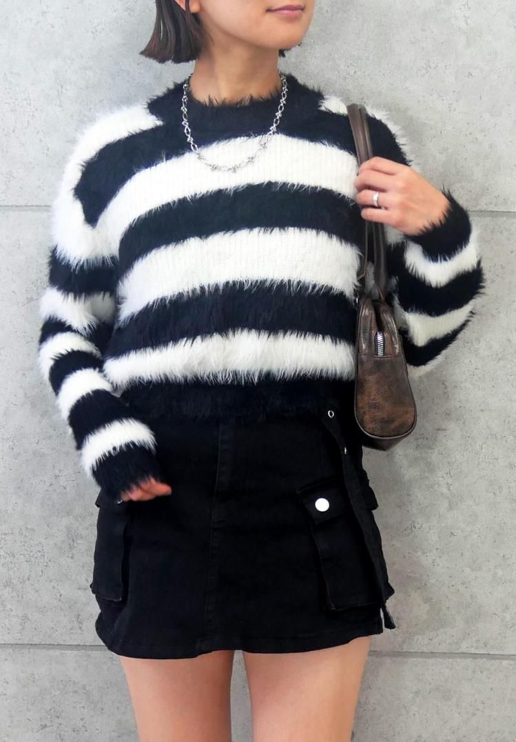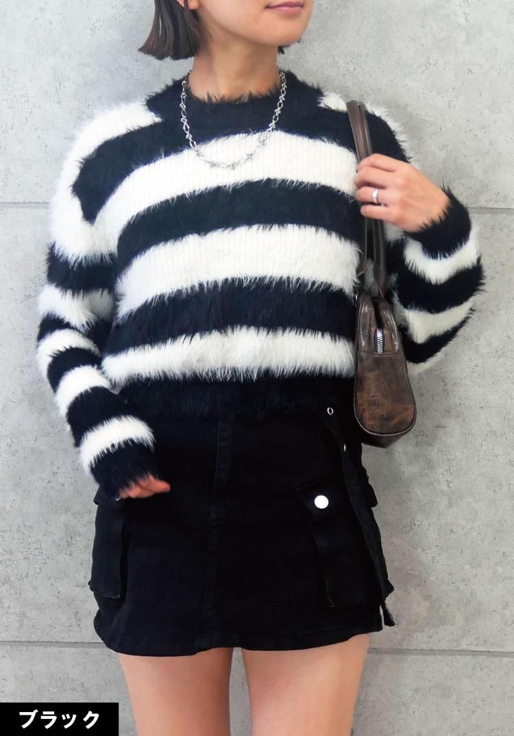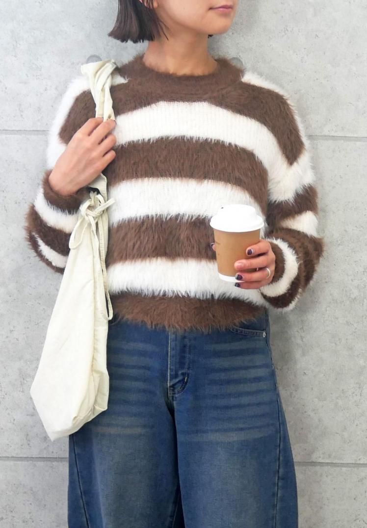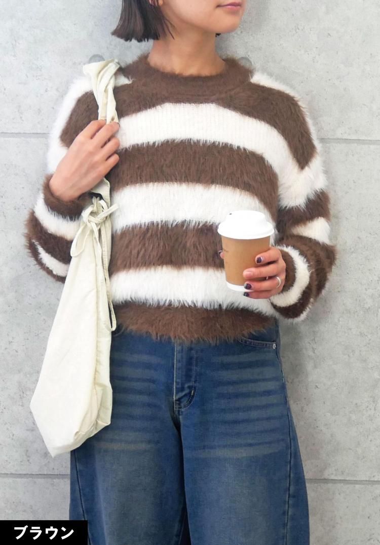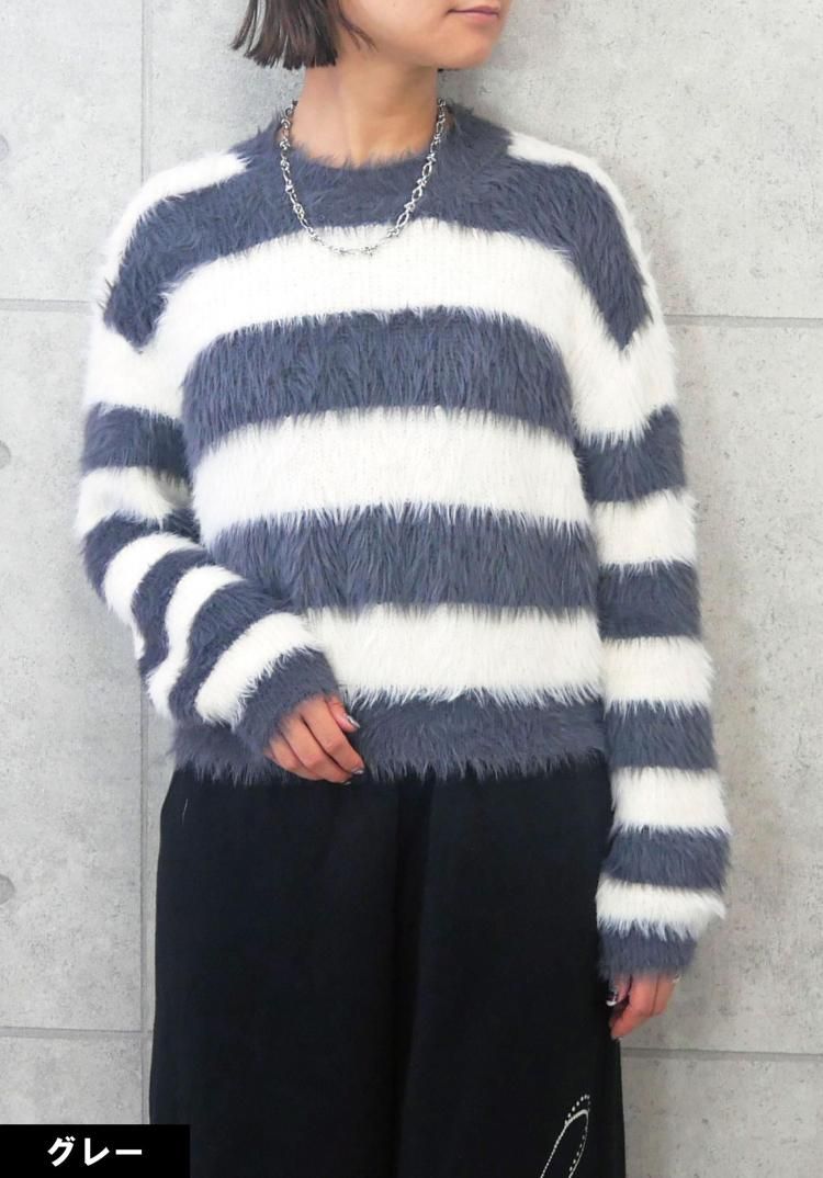 ボーダーシャギーニット